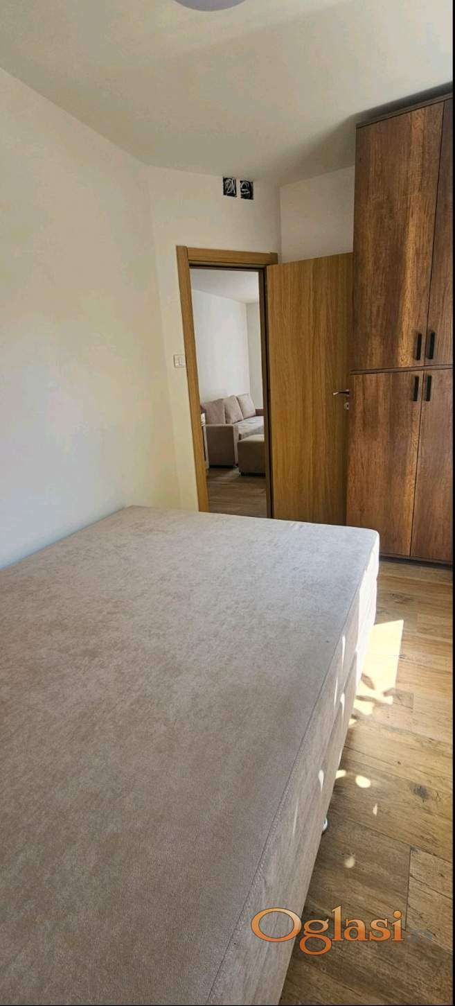 Izdaje se nov, namešten stan u kuči. Na prizemlju, jednosoban od 34m2, useljiv odmah. Dvoriste je uredjeno sa ogradom i travnjakom. Podno grejanje, klima, parking i dvorište.
