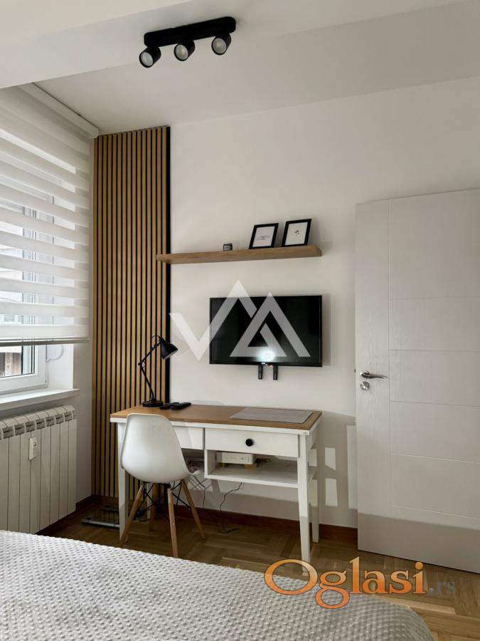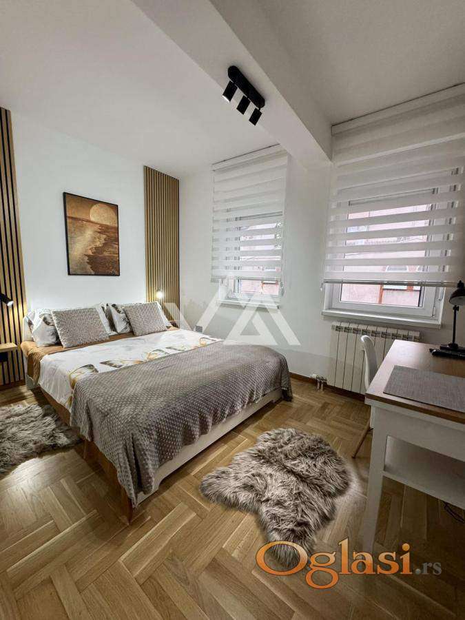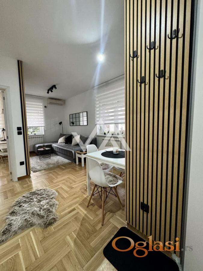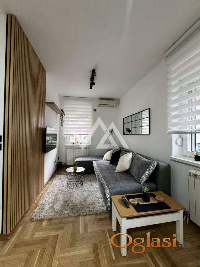 Izdajem lux opremljen stan:40m2,prvi sprat,svetao,dvostrano,ulicno orjentisan.Nalazi na Lekinom brdu,u bizini parka Sumice.Poseduje odvojenu spavacu sobu,centralno grejanje je sa kalorimetrom (placanje po potrosnji). Renoviran i moderno opremljen...Poseduje ugradne plakare,klimu,masinu za pranje i susenje vesa,masinu za pranje sudova,kompletno posudje... 700e+depozit 50% AG Provizija.
