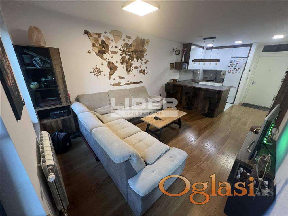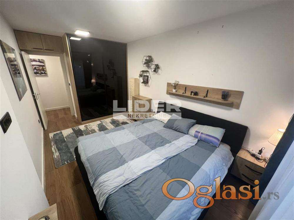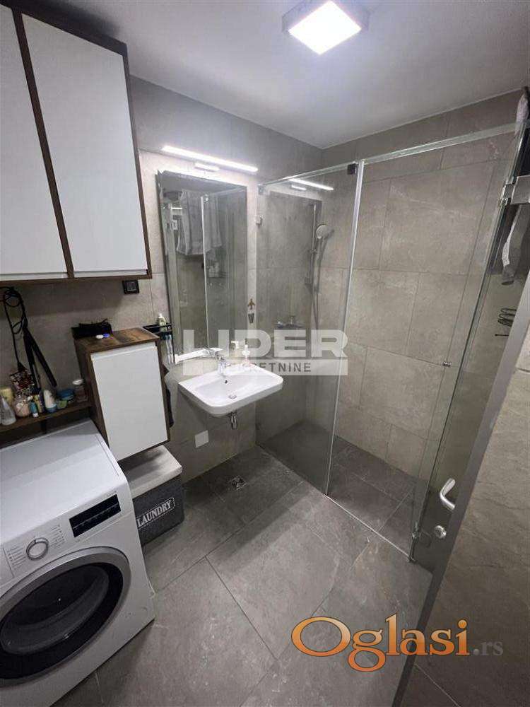 Opremljen je novim namestajem, belom tehnikom, Samsung 50" Smart 4K TV-om, kao i obiljem ugradnih plakara i garderobera koji obezbeduju maksimalan komfor bez narušavanja prostora.