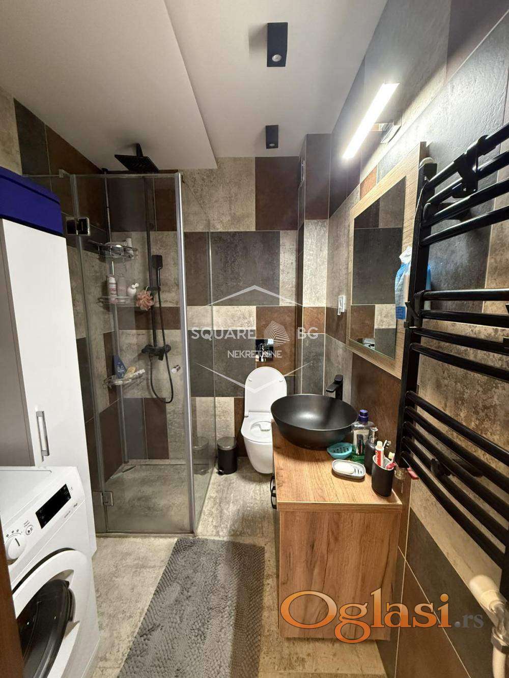 Stan je moderno namešten i poseduje sve elemente neophodne za život (veš mašina, sudomašina, šporet, rerna, posuđe, frižider, klima, TV, usisivač, pegla, fen). Nov je, zgrada je useljena pre 2 godine. Grejanje na struju i/ili inverter klimu - plaćanje po potrošnji.