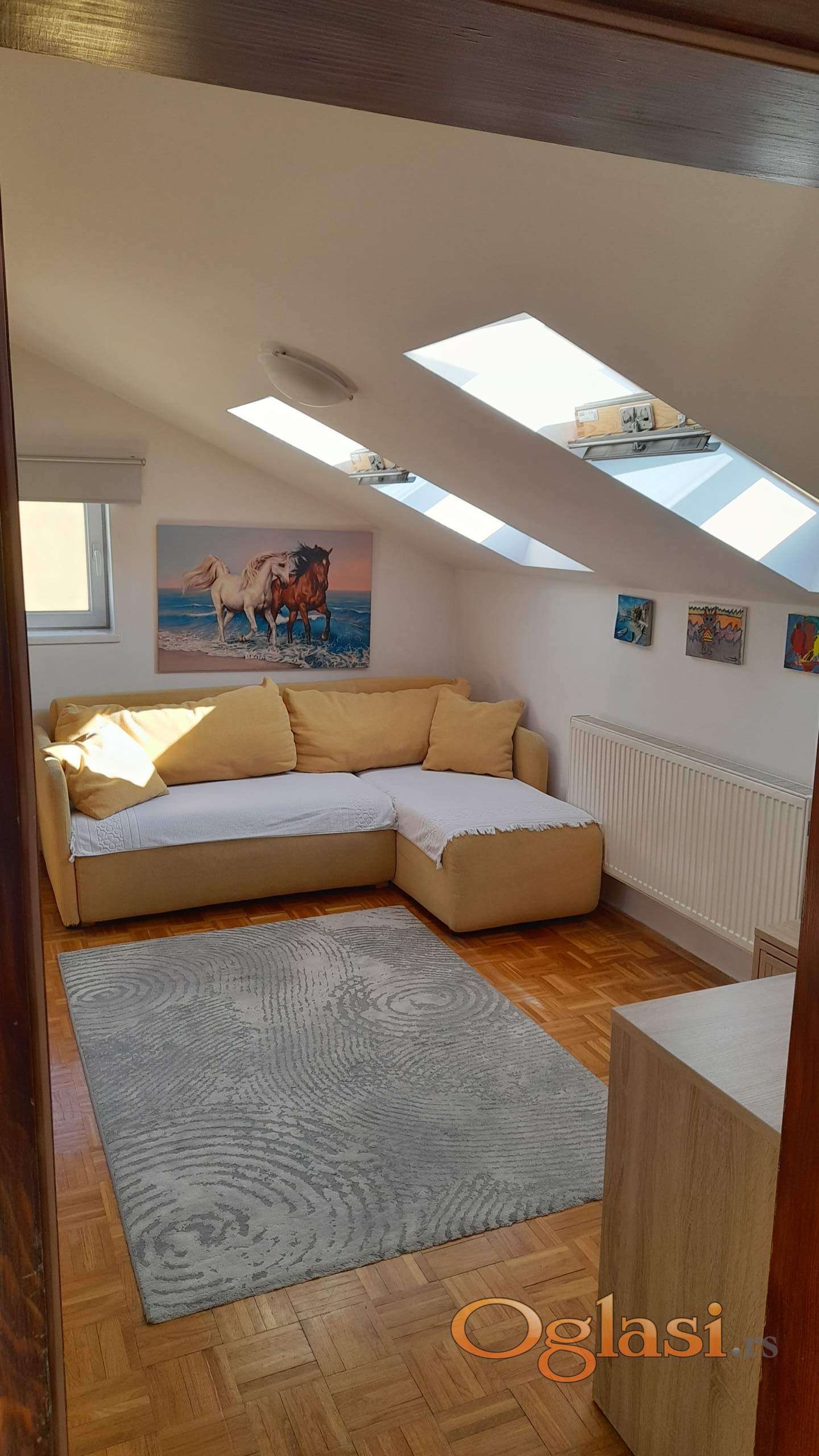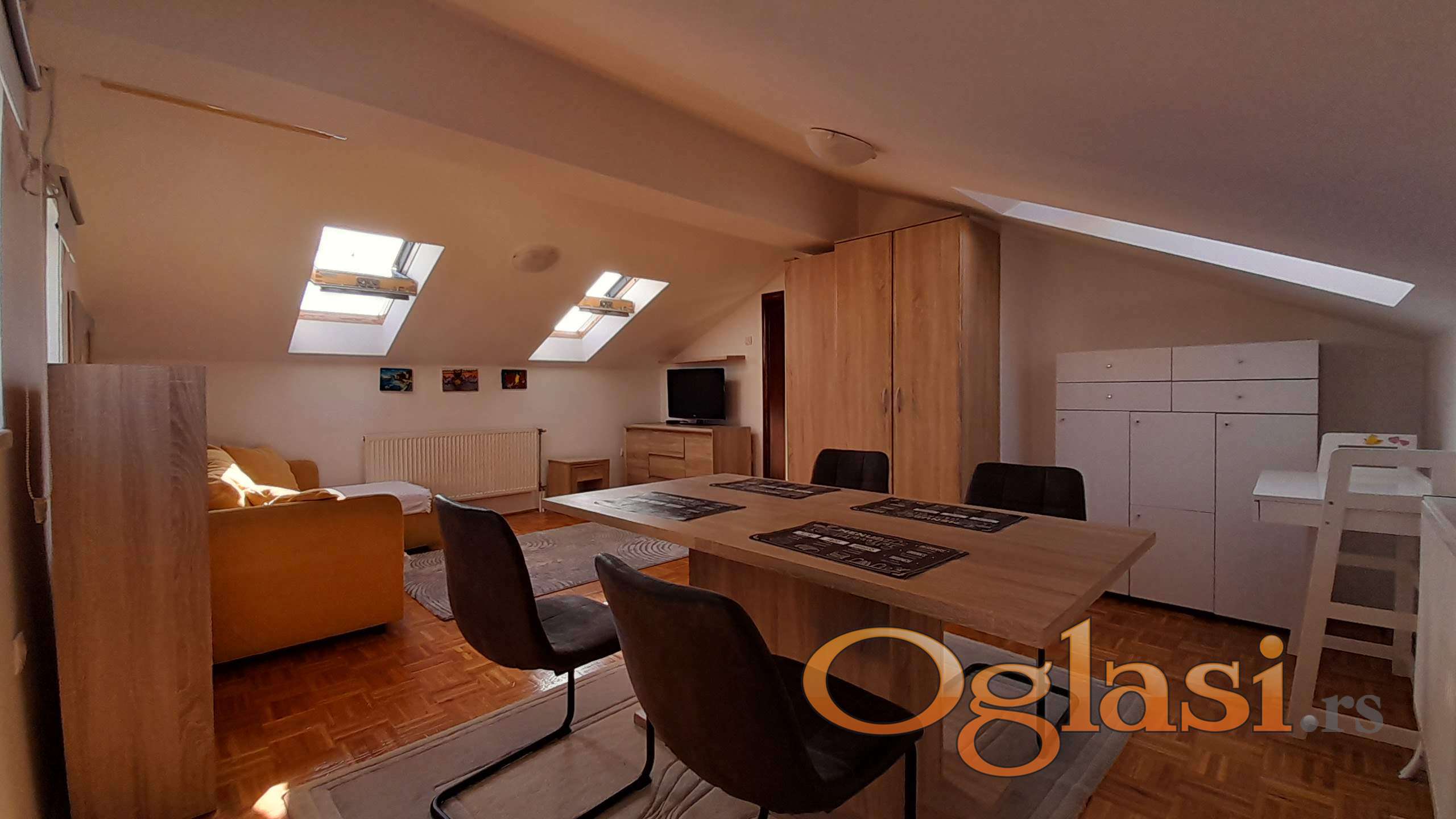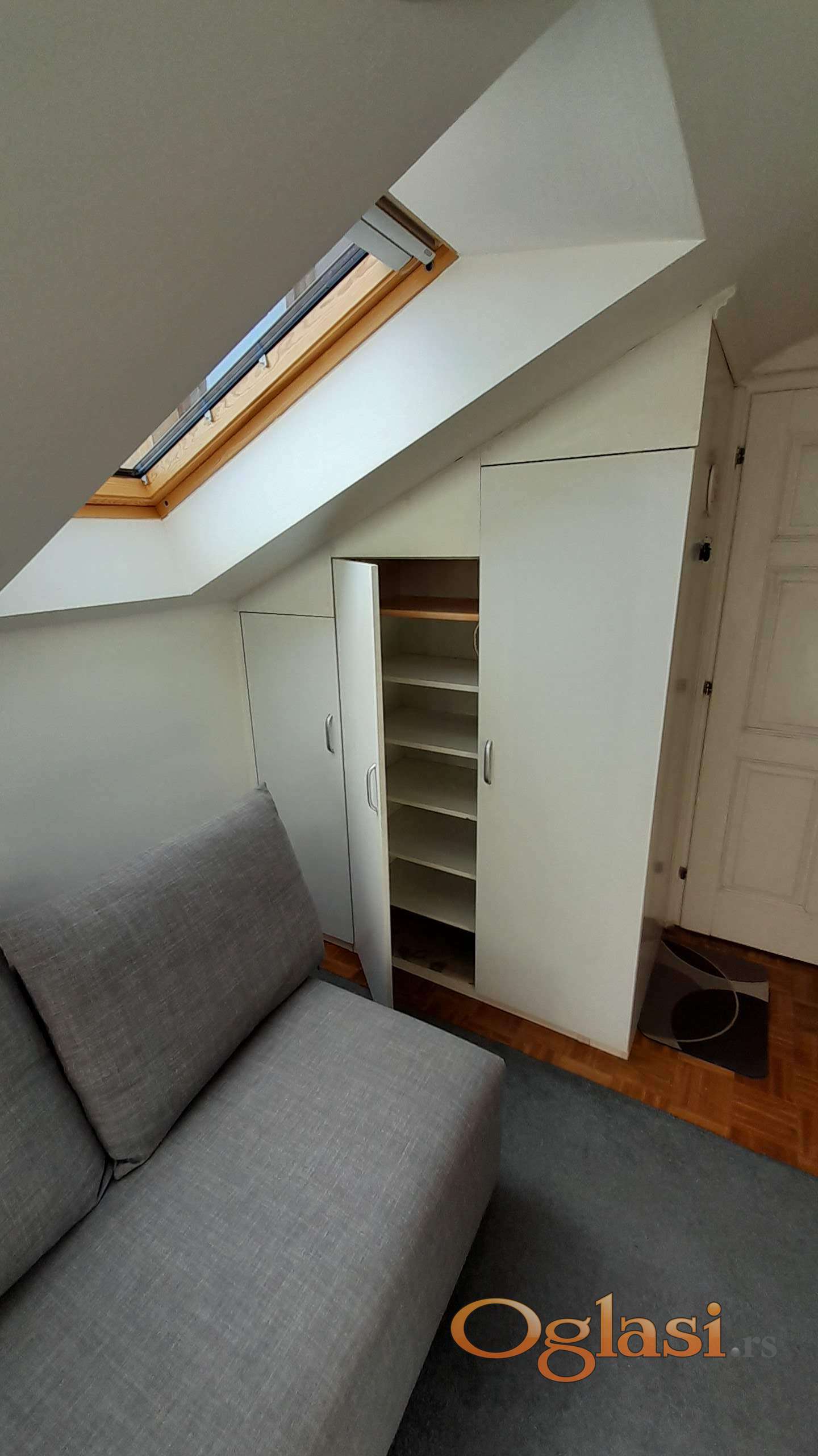 Izdaje se svetao i funkcionalan stan u mirnom delu Jugovićeva, na 4. spratu (potkrovlje). Stan ima 43 m² korisne površine (48 m² u osnovi) i potpuno je opremljen za stanovanje.