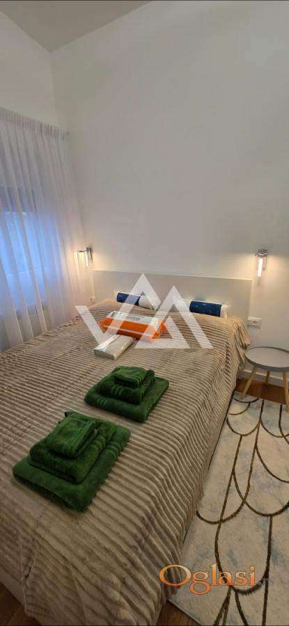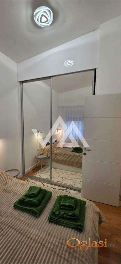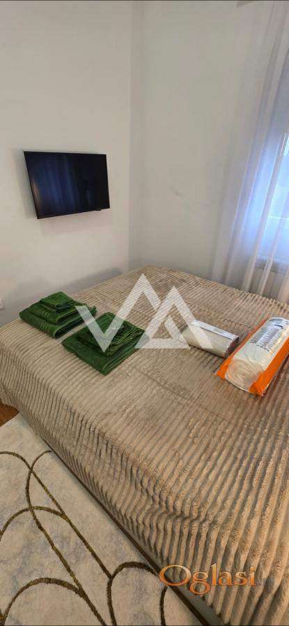 Stan je potpuno nov u lux novoj zgradi i odmah je useljiv. Uz stan ide garazno mesto. Stan je extra luxuzno opremljen. Svaka soba ima TV SMART Samsung . Kompletna bela tehnika: frizder, zamrzivac, ravna ploca, rerna, masina za sudove, masina za ves. Komplet mali kucni aparati: toster, ketler, cedilica, aparat za kafu, vaga za merenje, mikser, fen za kosu. Komplet sudovi, escajg, soljice, tiganji, serpe. Komplet opremljeno kupatilo: ogrtaci za tusiranje, papuce, peskiri, posteljina, jastuci, ofingeri. Sve NOVO. Odvojena spavaca soba. Terasa sa setom za sedenje. Brz internet, kablovska televizija 250 kanala, video nadzor. Stan je idealan za mladi bracni par, 2 studenta ili poslovne ljude.