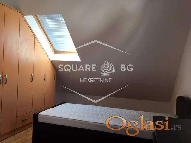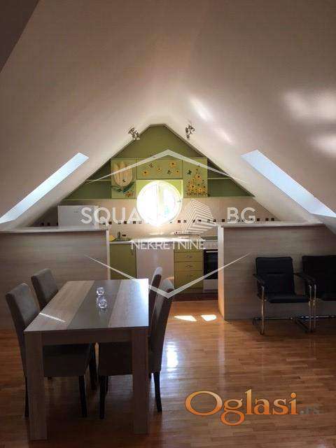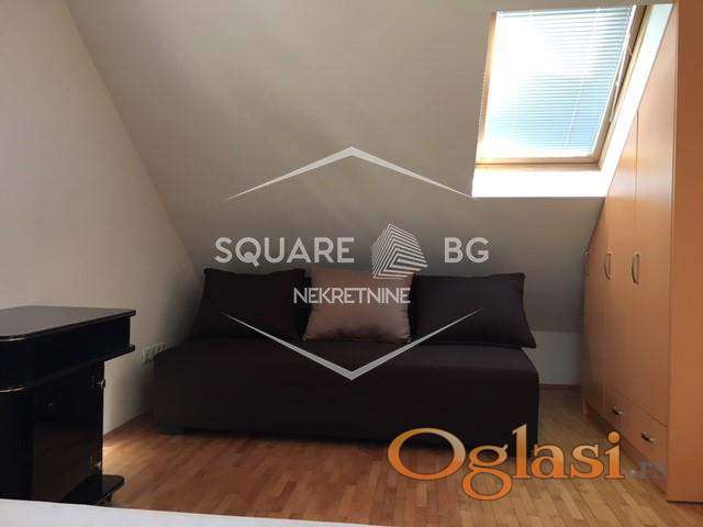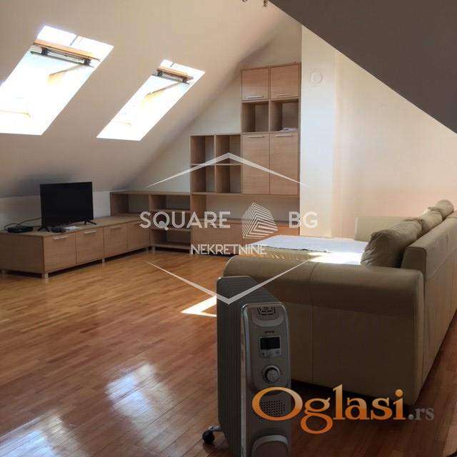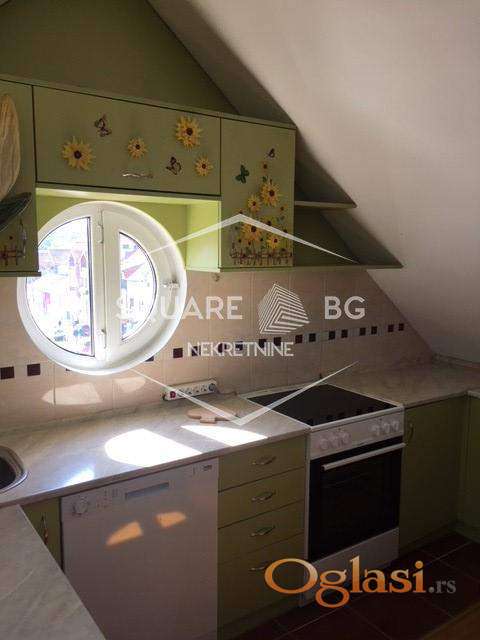 Jako dobar stan na top lokaciji, u zgradi banke Intesa. Stan je u potkrovlju zgrade (treći sprat), jako svetao sa puno Velux prozora. Uknjižen na 55m2 ali ima dosta veću kvadraturu. Useljiv od 01.marta. Stan se sastoji od velikog ulaznog hodnika odakle se odvajaju dvoje vrata, jedna od kupatila a druga od posebne prostorije sa garderoberima koja ima prirodnu svetlost i koja pored odlaganja garderobe može da služi za odlaganje i drugih stvari. Pravo iz ulaznog hodnika se ulazi u veliki prostor koji se sastoji od dnevnog boravka, trpezarije i kuhinje. U dnevnom boravku je ugaona Simpova garnitura koja je ovih dana kompletno renovirana i bukvalno kao nova i koja može da se rasklapa. Iz dnevnog boravka se ulazi u odvojenu spavaću sobu. Stan se kreči ove nedelje i od 01.marta može da se useli. Zgrada u kojoj se nalazi stan ima svoje dvorište koje je od ulice odvojeno vratima koja se zaključavaju i na njima je interfon. Zgrada ima samo 15 stanova. U neposrednoj blizini stana se nalaze prodavnice, pijaca, banka Intesa u prizemlju zgrade, vrtić, dve autobuske stanice na 200m koje su povezane linijski sa svim delovima grada. Stari centar Zemuna, Kej i poljoprivredni fakultet su na oko 1km peške. Predhodni stanari su bili četiri godine u stanu i zbog dobijanja dvoje dece idu u veći stan. Poželjno za stanare koji planiraju da ostanu neki duži period, ne kraće od godinu dana. Obavezno potpisivanje ugovora i depozit u visini jedne kirije, koji se daje prilikom ulaska u stan sa prvom kirijom. Plaćanje se vrši mesečno do datuma kada se dogovorimo (nije fiksno da mora prvi u mesecu). Fiksni troškovi: infostan 4800-5000rsd (u cenu uračunato i održavanje zgrade), kablovski i internet paket i operater po izboru zakupca, struja po utrošku. Zimi se stan greje sa uljanim radijatorima i inverter klimom. Stan je inače jako svetao i ako je sunčano bukvalno ima efekat staklene bašte. Zgrada je novije generacije (zidana posle 2000 godine) i ima jako dobru krovnu konstrukciju i izolaciju. Agencijska provizija 50%