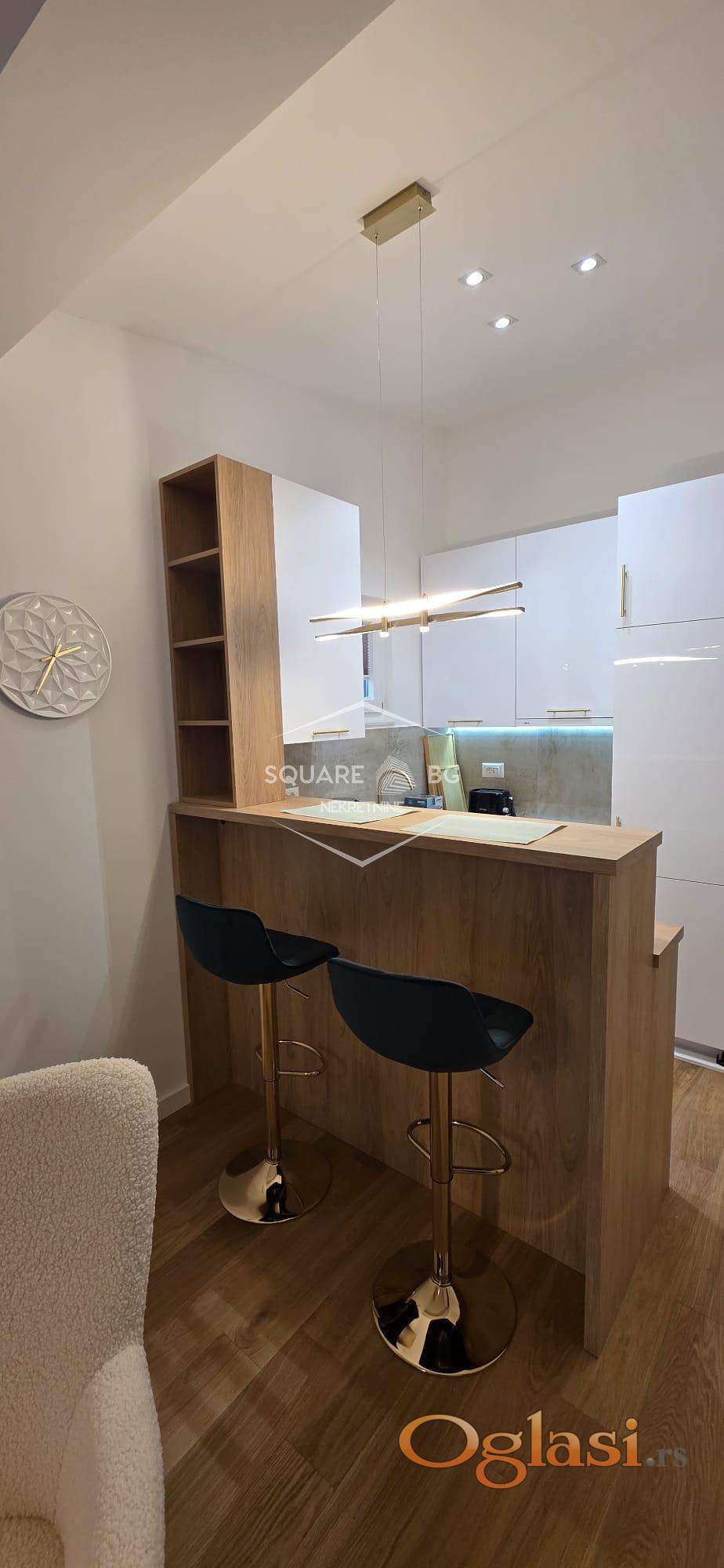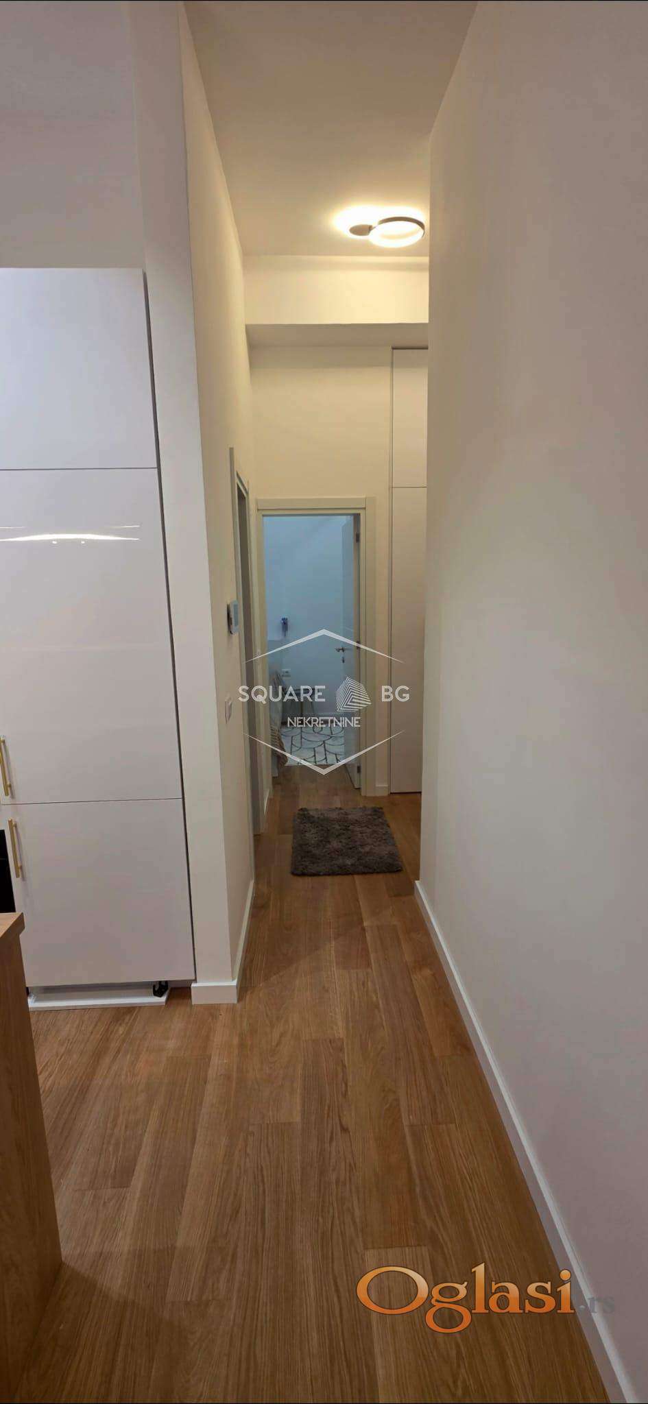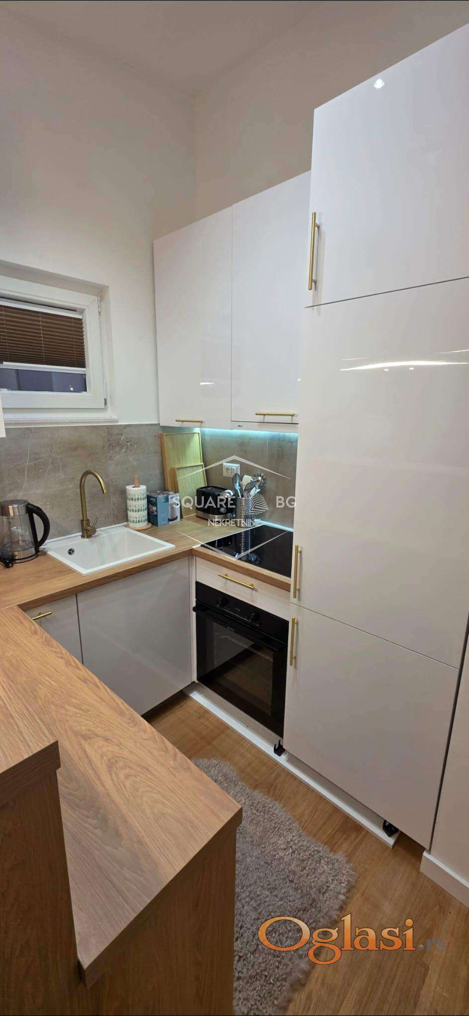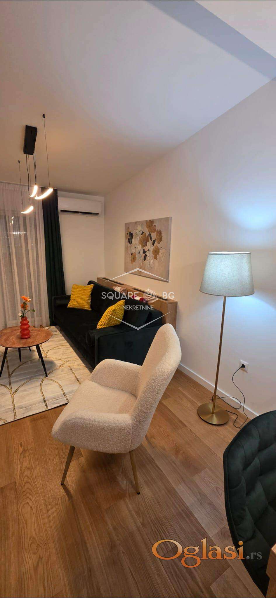 Stan je potpuno nov u novoj zgradi Beomarket. Na IV spratu od V spratova. Ima garazno mesto koje je ukljuceno u cenu. Full opremljen. Klijent treba samo svoje licne stvari da donese. Komplet bela i braon tehnika i mali kucni aparati. Komplet sudovi i escaj i case i soljice i serpe i tiganji. Ogrtaci za kupanje, papuce, 3 seta peskira. Video nadzor , klima, terasa sa setom za sedenje. Odvojena spavaca soba. 2 TV Smart Samsung. Kablovska i ultra brz internet. Odmah useljiv. 750 mesecno. Nisu dozvoljeni kucni liubimci. Stan je veoma svetao. Stan i terasa gledaju na jugo zapad sa sjajnim pogledom na Beograd. Agencijska provizija 50%