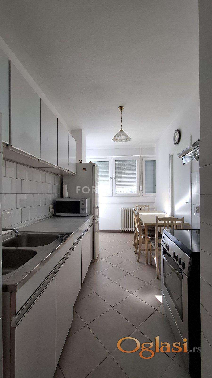 Centralno grejanje, klima, kompletna bela tehnika, internet i kablovska – useliš se i živiš.