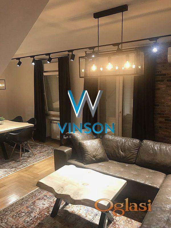 Novi Sad, Centar, ulica Pavla Papa. Namešten dvoiposoban dupleks stan koji se nalazi na jednoj od najatraktivnijih i najtraženijih lokacija za stanovanje. Blizina strogog centra grada, Futoške pijace, Bulevara oslobođenja i Novosadskog sajma. Ovaj stambeni prostor čine dve etaže. Na donjoj etaži nalaze se dnevni boravak sa trpezarijom, kuhinja, toalet i terasa. Na gornjoj etaži nalaze se dva spavaće sobe. Pozicioniran na IV spratu stambene zgrade sa liftom. Dvorišno orijentisan. Izdaje se na duži vremenski period. Useljiv od 01.04.2026. godine. (Vinson nekretnine, Novi Sad, Reg. br. posrednika: 1085)