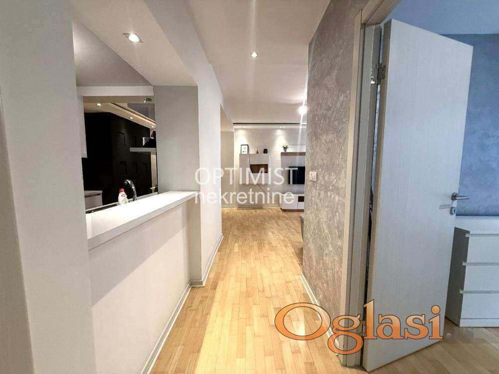 Optimist nekretnine vam nude luksuzno renoviran trosoban stan nadomak centra grada. Stan se nalazi na odličnoj lokaciji, u neposrednoj blizini centra. Iako je u prometnoj ulici, zahvaljujući aluminijumskim prozorima i dobroj zvučnoj izolaciji, pruža mir i privatnost. Potpuno je renoviran, dizajnerski uređen sa nameštajem rađenim po meri i idealnim rasporedom prostorija. Stan je svetao, ušuškan i poseduje dosta prostora za odlaganje. Velika terasa proteže se duž dnevne i spavaće sobe. Dodatno: – Dve klime – Odlična izolacija – Nije pet friendly Hvala što ste izdvojili vreme za naš oglas. Optimist Real Estate presents a fully renovated luxury three-bedroom apartment near the city center. Located close to the city center, this property offers excellent connectivity and urban convenience. Although positioned on a busy street, the apartment provides peace and privacy thanks to aluminum windows and quality sound insulation. Fully renovated and designer-furnished with custom-made elements, the layout is functional and comfortable, offering ample storage space. The apartment is bright and cozy. A spacious terrace extends from the living room to the bedroom. Additional features: – Two air conditioning units – Excellent sound insulation – Not pet-friendly Thank you for taking the time to view our listing. Agencijska provizija 50%