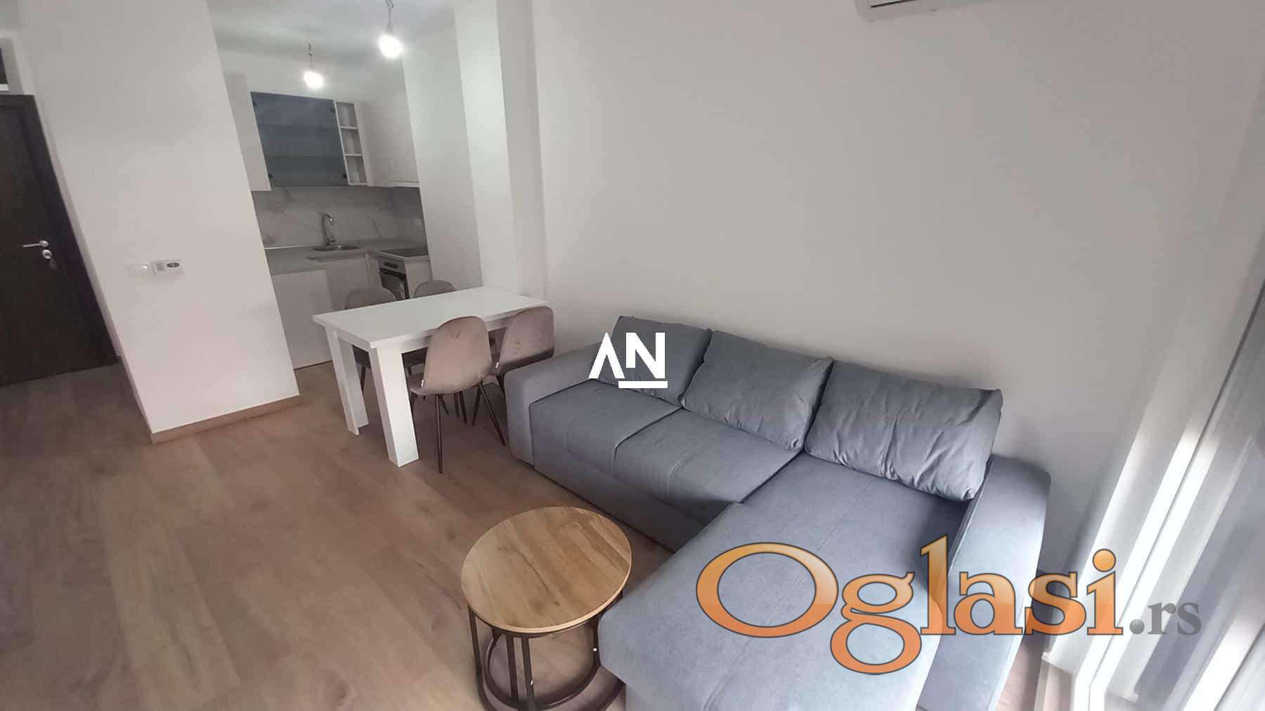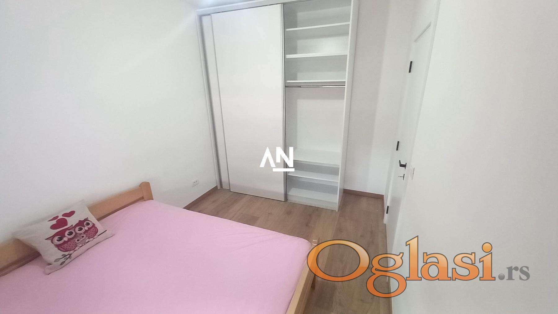 Nov stan, potpuno opremljen, nalazi se u mirnom delu grada, u urednoj i održavanoj zgradi sa liftom. Stan je svetao, orijentisan ka severu, sa odvojenom spavaćom sobom, dnevnim boravkom, kuhinjom, trpezarijom i terasom. Opremljen je novim nameštajem i svim potrebnim uređajima. U neposrednoj blizini nalaze se prodavnice, marketi, tržni centar, škola, vrtić, kao i stanice gradskog prevoza (autobusi 17, 84, 702, 703, 704, 707, 705). Depozit je u visini jedne mesečne kirije. Info stan sa održavanjem iznosi 5.000 dinara, dok se struja plaća po potrošnji. Stan ima internet i kablovsku TV (1500 dinara), klima uređaj, lift. Lux kategorija. Sigurnosna vrata, interfon. Kućni ljubimci nisu dozvoljeni, pušenje jeste.