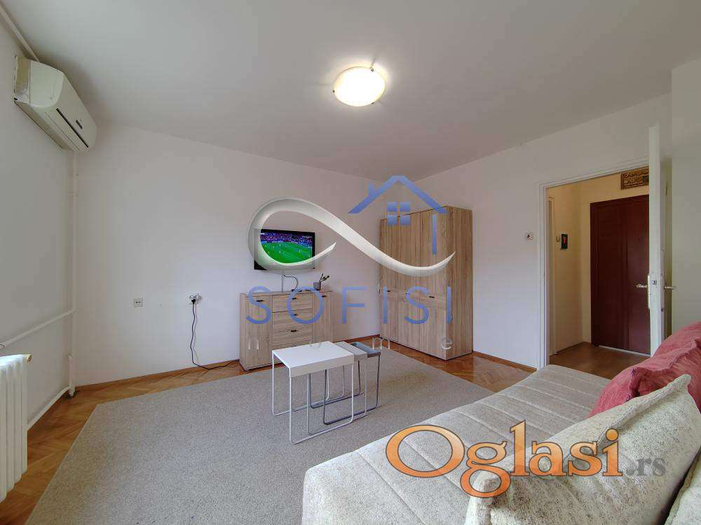 Novi Sad, Bulevar Jaše Tomića, ulica Save Ljubojeva. Predstavljamo odličan, manji, kompletno namešten dvosoban stan u mirnoj i ozelenjenoj ulici preko puta Glavne autobuske stanice i McDonald's-a. Ovaj izuzetno svetao stambeni prostor u izvornom obliku je planiran kao jednosoban stan. Međutim, kreativnim rešenjem on je pretvoren u sasvim funkcionalan, manji dvosoban stan koga čine svetao i lep dnevni boravak, fizički odvojena, nova kuhinja, odvojen spavaći deo, ulazni hodnik i kompletno renovirano kupatilo. Bez terase. Sa lepim pogledom na zelenilo. Pozicioniran na IV spratu veoma uredne zgrade starije gradnje bez lifta. Ali, za razliku od većine zgrada bez lifta, gde postoji dugi niz stepenika pa odmorište, u ovoj zgradi je lako popeti se do IV sprata jer se ide po 4/5 plitkih stepenika pa odmorište. Kablovska televizija i internet. Klima, veš mašina, tv. Centralno gradsko grejanje - plaća se kroz informatiku tokom cele godine. Izdavanje isključivo ozbiljnim, zaposlenim zakupcima pod ugovornom obavezom od minimum 12 meseci. Kućni ljubimci bilo koje vrste nisu dozvoljeni u stanu. Prednost nepušači. Potreban sigurnosni depozit u visini jedne zakupnine. Useljiv odmah.