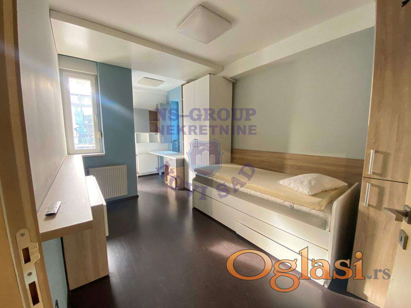 Izdaje se luksuzno namešten stan površine 123m², izuzetno komforan i funkcionalnog rasporeda. Stan poseduje tri prostrane spavaće sobe, svetao dnevni boravak sa trpezarijom i moderno opremljenu kuhinju, dva kupatila, jedan wc, izlaz na terasu iz svake sobe, sopstveni video nadzor kao i tri klima uređaja koji obezbeđuju maksimalnu udobnost tokom cele godine. Ulično je orijentisan, a veliki portali pružaju obilje prirodne svetlosti i otvoren pogled na bulevar, što prostoru daje poseban utisak elegancije i prostranosti. Idealan je za porodicu ili poslovne ljude koji traže komfor, reprezentativan prostor i odličnu lokaciju.
