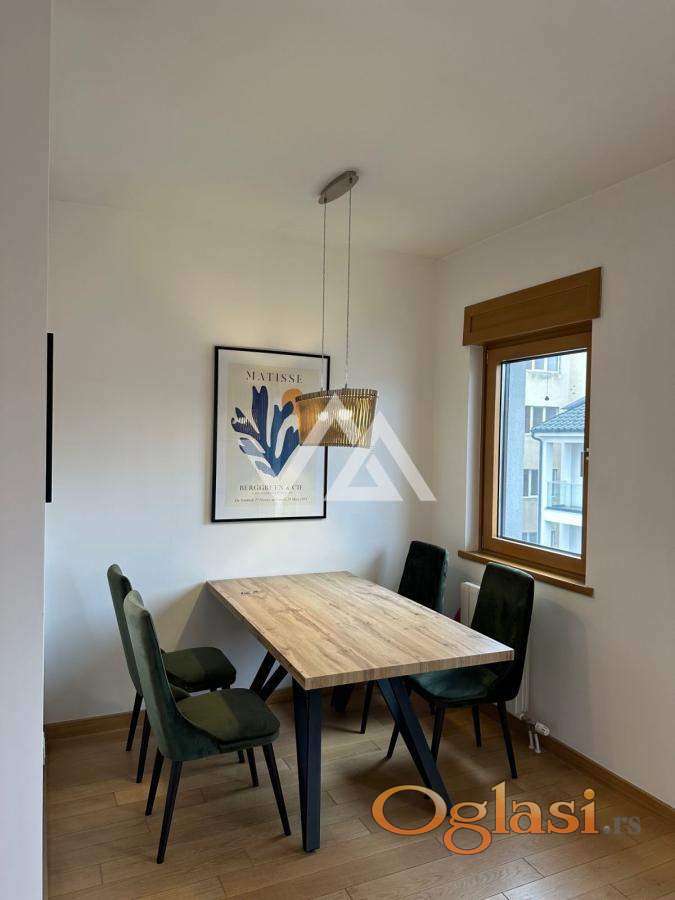 Izdaje se nov, namešten i kompletno opremljen stan u ulici Generala Horvatovića na Vračaru. Stan je na 4. spratu, okrenut ka dvorištu i ima odličan pogled. Zgrada je nova i poseduje lift. Sastoji se iz dnevne sobe, trpezarije, kuhinje, kupatila, velike spavaće sobe i dve terase. Plafoni su visoki, stan je osvetljen i dobro izolovan. Dvostrano orijentisan. Kompletno je sređen i odmah useljiv. Računi 100-150€ mesečno. 50% AG Provizija.