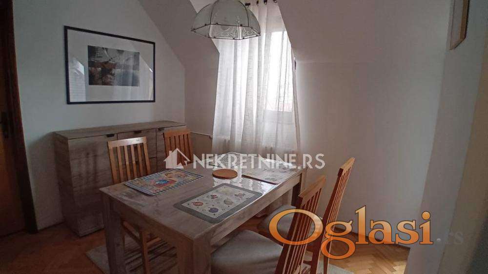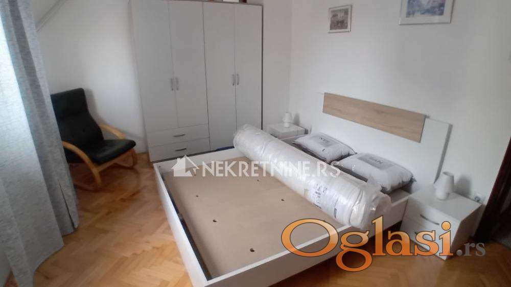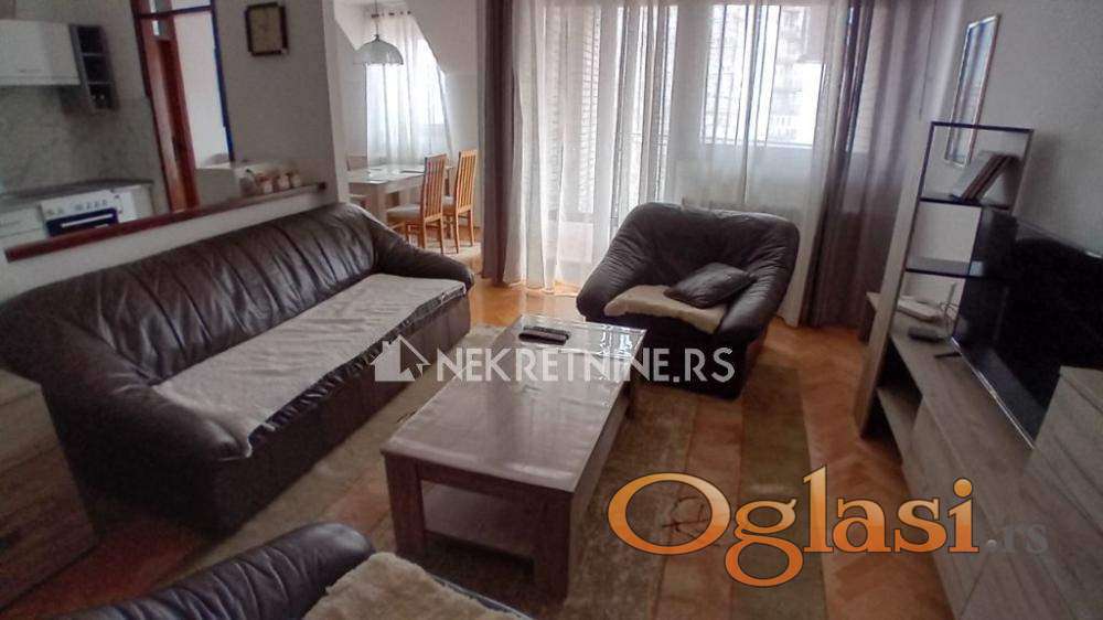 Izdaje se renoviran namešten stan, u ulici Anastasa Jovanovica,u blizini Juznog bulevara.Stan ima dnevnu sobu,kuhinju sa trpezarijom,dve spavaće sobe, kupatilo i toalet, dve terase i ostave u tavanskom prostoru. Kompletno i lepo opremljen.Dobro je povezan sa svim delovima grada.