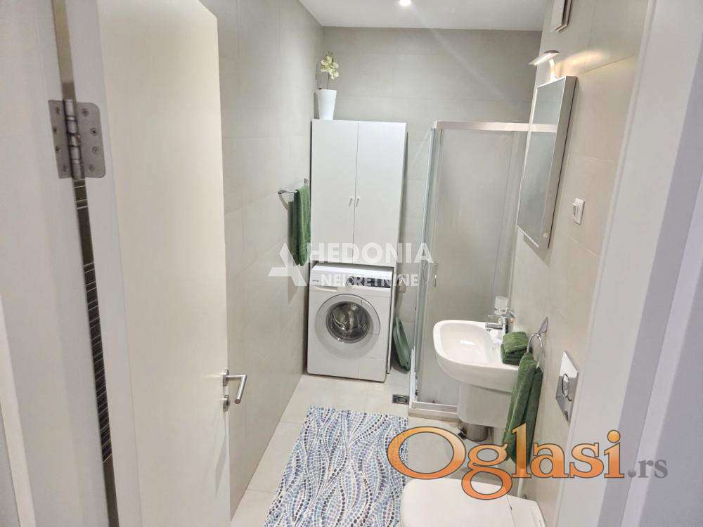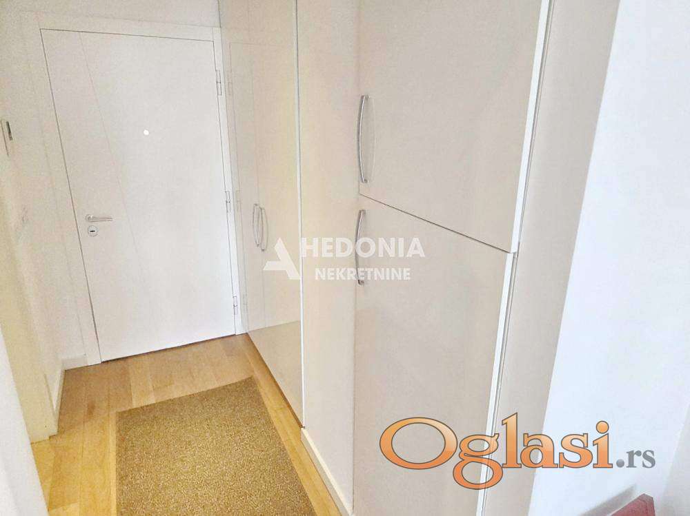 U prestižnom naselju na Novom Beogradu, West 65, koji je izvanredan primer spoja savremene umetnosti i arhitekture, nalazi se ovaj jednoiposoban stan za izdavanje. Impresivna izgradnja je učinila da ovaj deo grada postane simbol uspešnosti i kreativnosti. U West-u 65 se, osim modernih, po najsavremenijoj tehnologiji građenih zgrada, vodilo računa i o pejzažnom uređenju. U centru kompleksa nalazi se prelepo osvetljena fontana, pa ćete se osećati kao na moru. Uz veseli žamor ljudi iz okolnih kafića i restorana, učiniće da se osećate zdravo i raspoloženo. Deca, stariji sugrađani kao i kućni ljubimci su zaštićeni i sigurni u ovom kompleksu koji je sinonim za oazu mira, udobnog života i sveukupne lepote. Ceo kompleks ima dvadesetčetvoročasovno fizičko i video obezbeđenje.