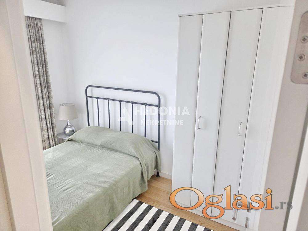 Stan je po strukturi jednoiposoban, noviji i luksuzan. Sastoji se iz ulaznog hodnika, dnevno kuhinjsko trpezarijskog dela, spavaće sobe, kupatila i terase. Izdaje se namešten. Obavezan depozit prema zakupodavcu u visini rente + 50% provizija agencije za usluge posredovanja.