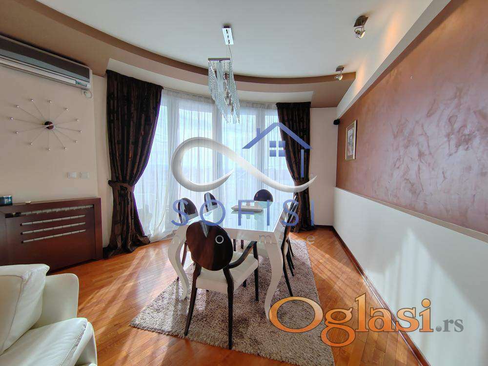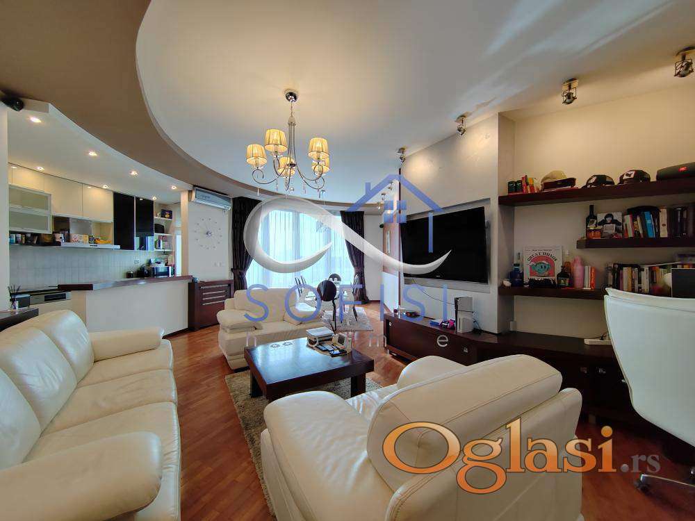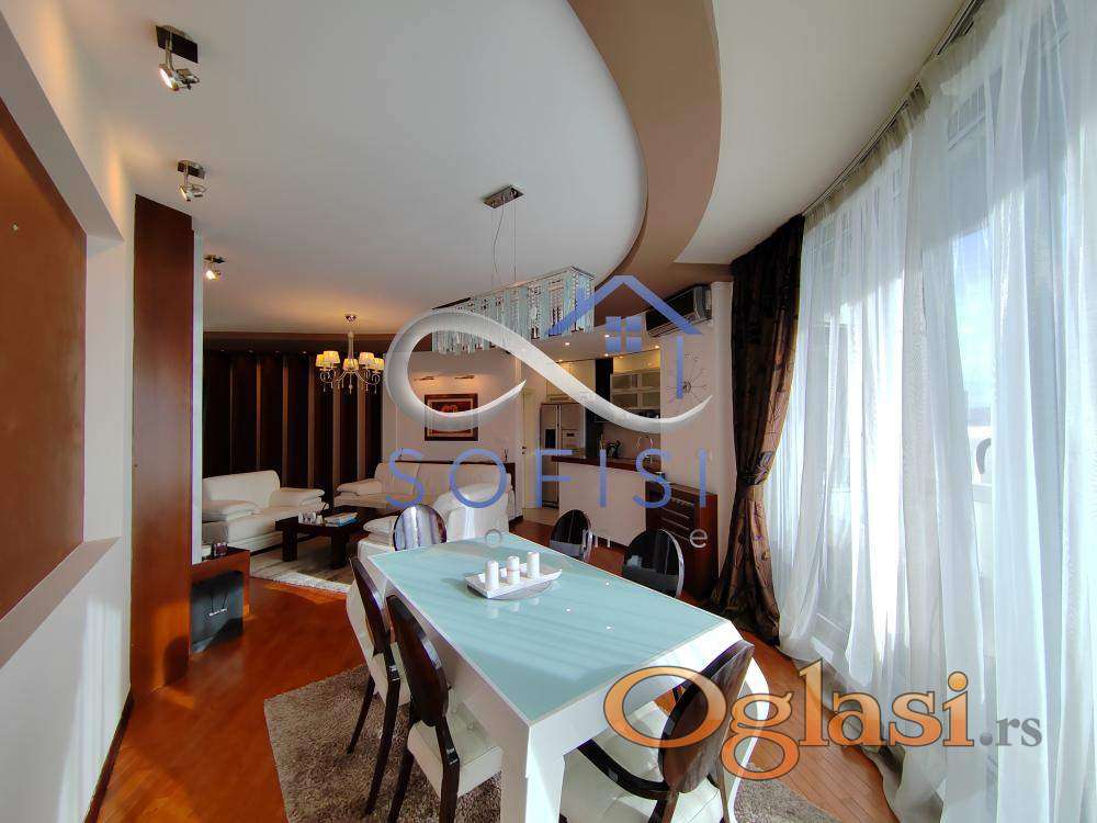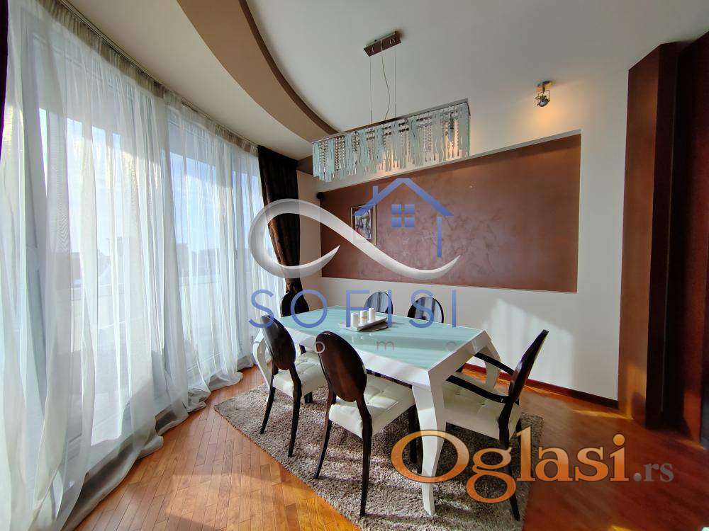 Novi Sad, Strogi centar grada, ulica Šafarikova - nadomak pešačke zone. Izdvajamo iz ponude odličan, nov, izuzetno komforan trosoban stan sa ogromnom kružnom terasom i panoramskim pogledom na grad. Ovaj veoma svetao, kvalitetno i moderno uređen trosoban stan nalazi se na VI spratu stambene zgrade sa liftom. U centralnom delu čine ga prostran dnevni boravak sa velikom trpezarijom, šankom odvojena, velika kuhinja, opremljena najsavremenijom belom tehnikom, ostava; spavaći blok koji čine dve spavaće sobe su prostorno, funkcionalno odvojene posebnim hodnikom. Stan poseduje veliko, novo kupatilo sa tuš kabinom i posebno toalet. Elektro sistem regulacije roletni. Dizajnerski birano osvetljenje, nameštaj od originalne kože... Klimatizovan. Cena zakupa same nekretnine je 900 EUR. Mesečno plaćanje se vrši na sledeći način: 1.250 EUR se mesečno plaća Zakupodavcu zakupnina za stan, plus zakup garaže u suterenu objekta plus režijski troškovi za Informatiku, kablovsku televiziju i internet. Pored navedenih 1.250 EUR zakupac plaća još samo račun za električnu energiju po potrošnji. Sigurnosni depozit iznosi 1.1250 EUR. Stan je useljiv od 01.04.2026. godine. Samo za ozbiljne zakupce isključivo bez kućnih ljubimaca na duži vremenski period.