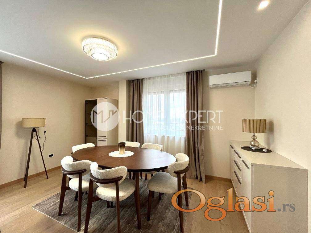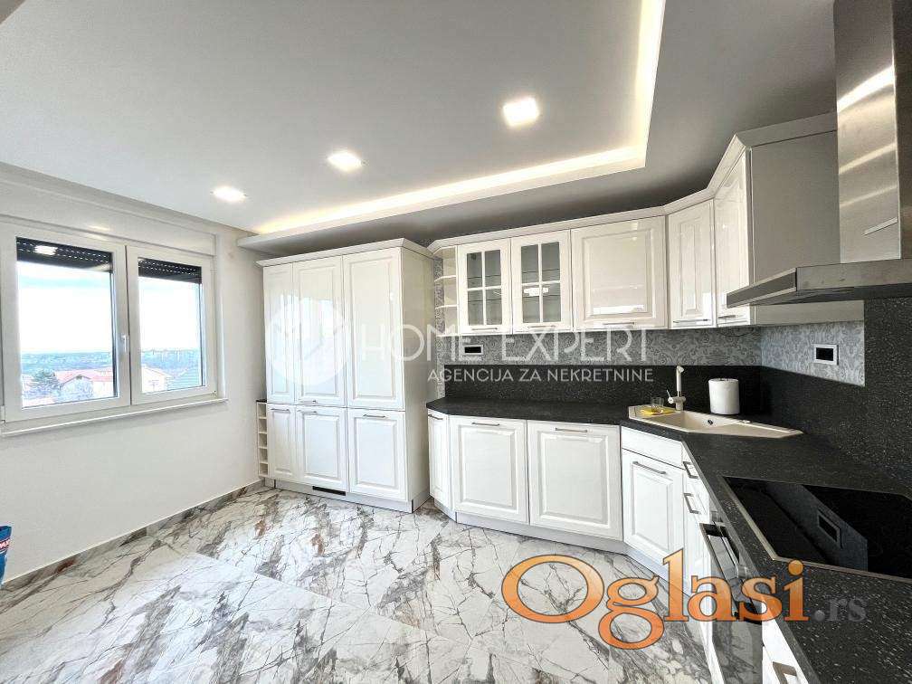 Sremska Kamenica, kompletno opremljen nov stan površine 112m2 sa garažom. Stan se nalazi u novoizgrađenoj zgradi u centru Sremske Kamenice u mirnoj ulici. Po strukturi je četvorosoban, opremljen je novim luksuznim nameštajem i kvalitetnom tehnikom. Stan ima veliki dnevni boravak sa trpezarijom i velikom terasom sa panoramsskim pogledom na Dunav, moderno opremljenu veliku kuhinju takođe sa pogledom na Dunav, tri spavaće sobe od kojih je jedna master soba sa svojim kupatilom, kupatilo i toalet. Uz stan se dobija i garaža u zgradi. Do centra Novog Sada potrebno 5 minuta vožnje. U neposrednoj blizini se nalazi škola, autobusko stajalište, prodavnice. Prilikom useljenja potreban je depozit u visini kirije. Za više informacija pozvati 060/4717-520. - Šifra nekretnine: 9100586