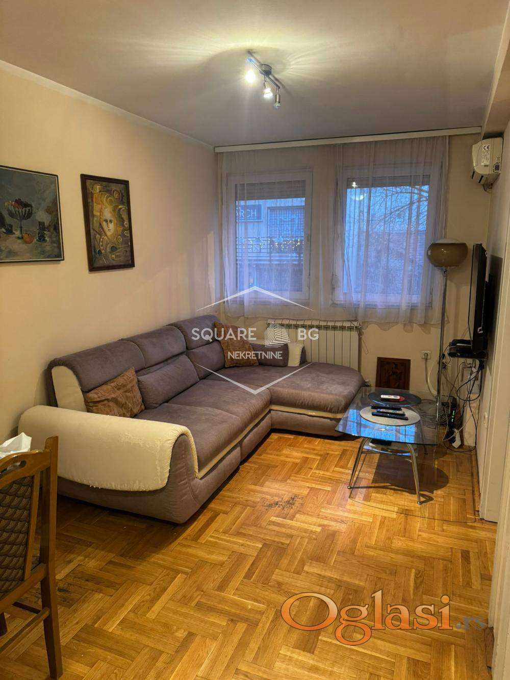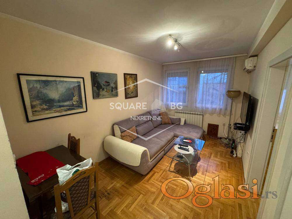 Dvosoban stan u zgradi, visoko prizemlje-visina prvog sprata. Garažno mesto u zgradi,cena sa parkingom 500€. Stan je namešten. Od prostorija ulazni deo, dnevna soba, spavaća soba, izdvojena kuhinja, kupatilo i ostava uz stan. Grejanje etažno, klima, kablovska i internet. Odlična povezanost GSP-om. Zakupnina 450 evra.