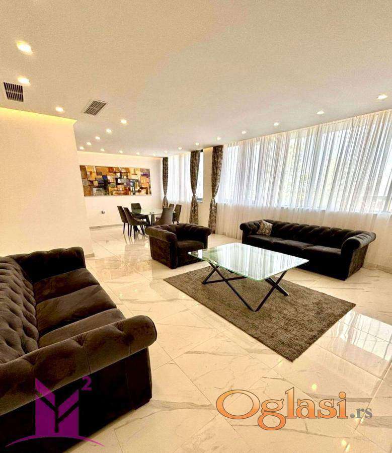 Izdajemo moderan i potpuno opremljen stan na oko 5 km od centra Novog Sada. Zgrada je novije gradnje i poseduje lift, video-nadzor, video interfon i uređeno dvorište sa letnjikovcem i zelenilom. Stan je vrhunskog kvaliteta, sa podnim grejanjem, granitnim podovima, spuštenim plafonima, modernom LED rasvetom i plafonskim split sistemima za grejanje i hlađenje. Raspored čine dnevni boravak sa kuhinjom i trpezarijom, tri spavaće sobe, dva kupatila, dva hodnika i tri terase. Izdaje se kompletno namešten, sa kvalitetnim nameštajem i tehnikom, spreman za useljenje. Za više informacija kontaktirajte nas na broj: Mila 0628153377 i Milica 0652726857 Registarski broj posrednika: 1018 M2 kvadrat nekretnine, Novi Sad