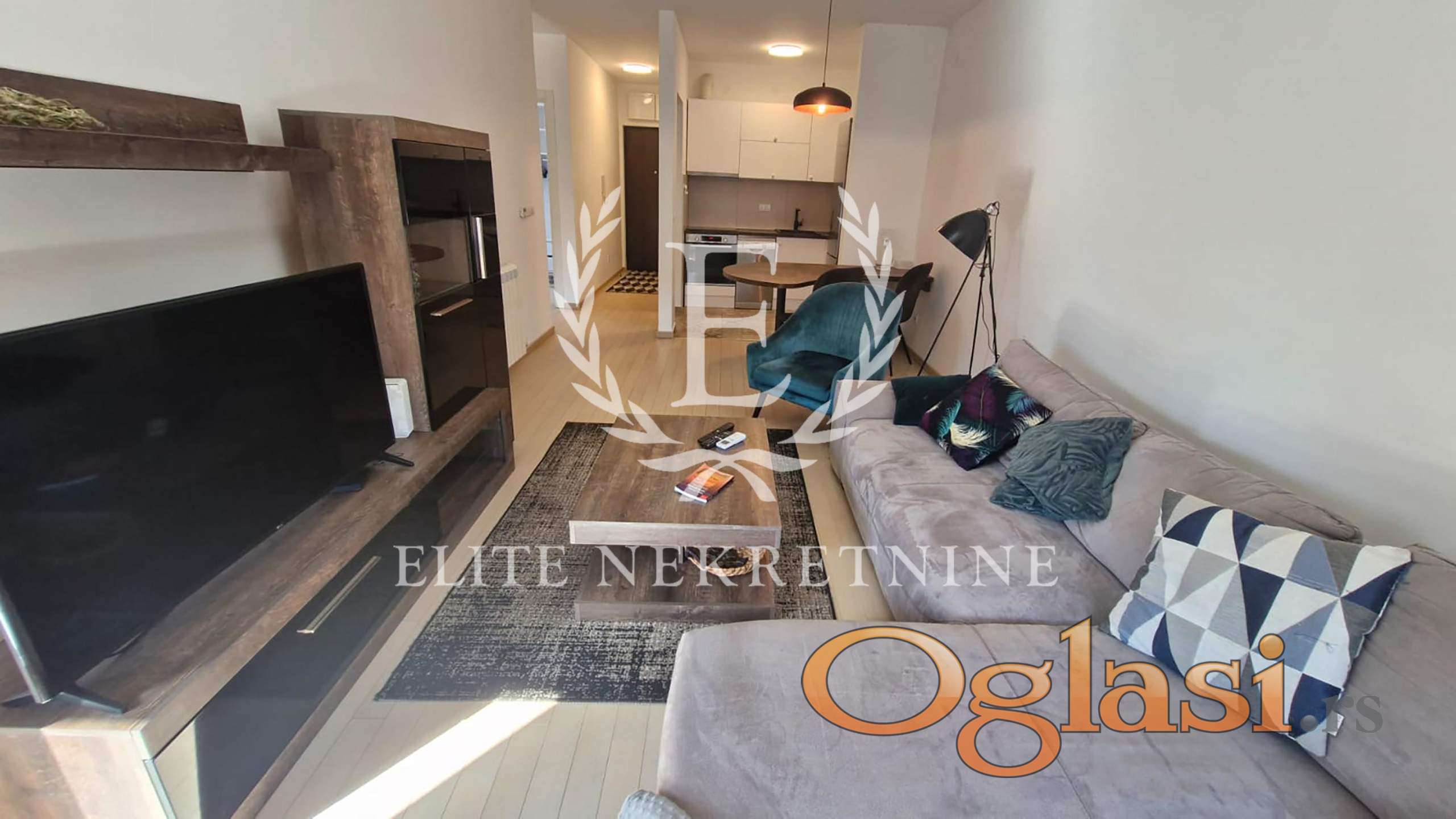Enterijer je savremeno osmišljen. Dnevni boravak je svetao i prijatan, sa izlazom na terasu koja pruža dodatni prostor za odmor i uživanje. Kuhinja i trpezarija čine skladnu celinu, dok je stan projektovan tako da maksimalno iskoristi prostor i prirodnu svetlost.