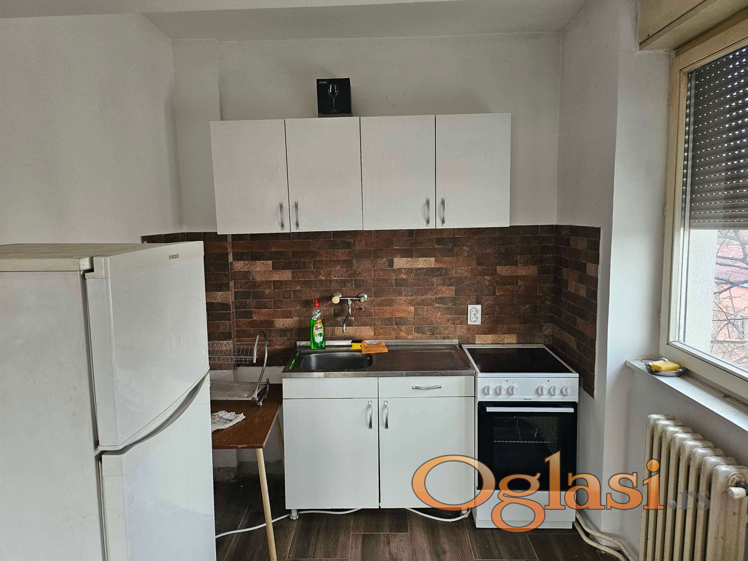 Izdaje se polu-namesten stan,mesečna kirija je 200 evra plus depozit 250.Kupatilo je sa ves mašinom,poseduje tv,kuhinju sa kombinovanim frižiderom i šporetom sa rernom.Ima velik trosed na razvlačenje i fotelju.