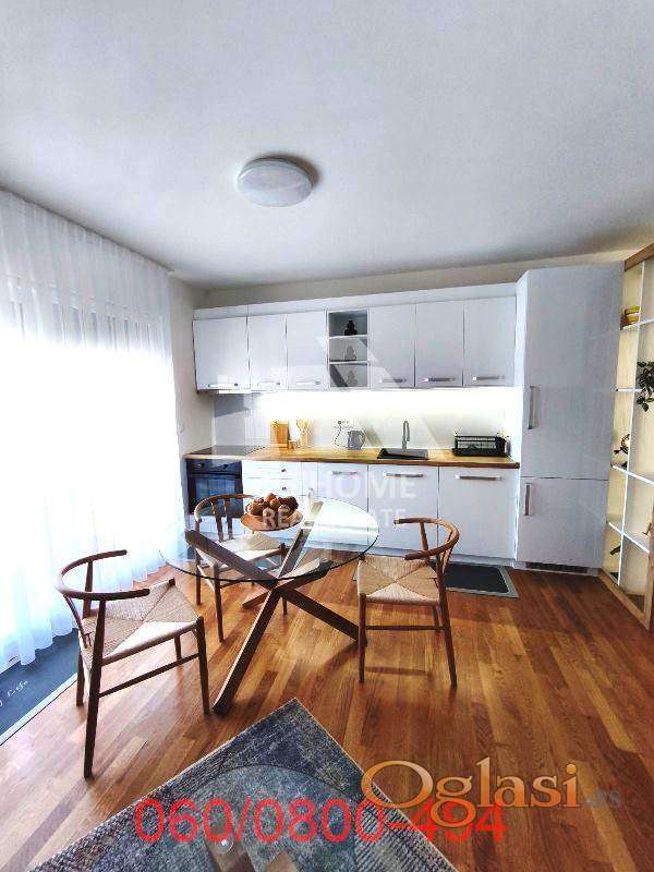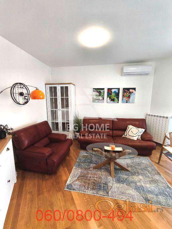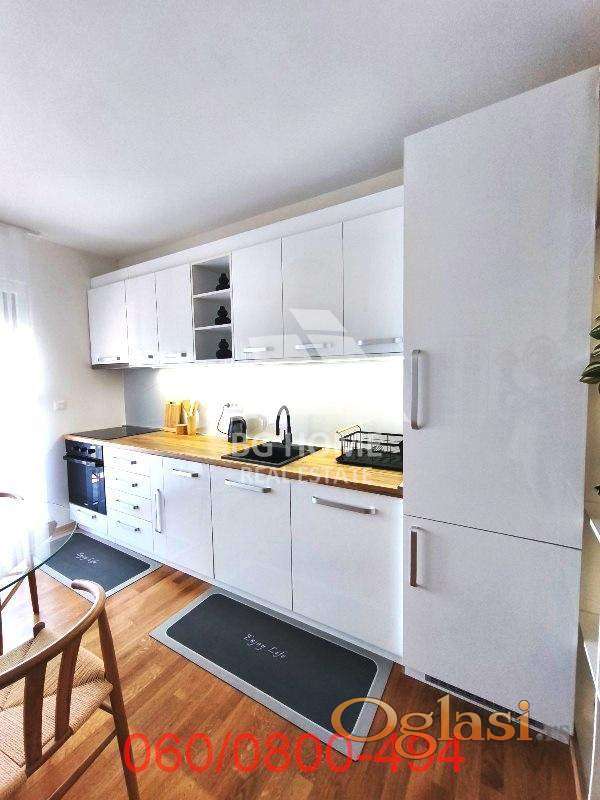 Stan je veoma funkcionalan i opremljen novim nameštajem, klima uredjajem i neophodnim uredjajima i aparatima za ugodan život (mašina za pranje posudja, mikrotalasna u kuhinji, mašina za pranje veša u kupatilu, klima uredjaj u dnevnom boravku). Grejanje je centralno (radijatori).
