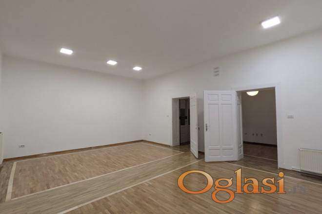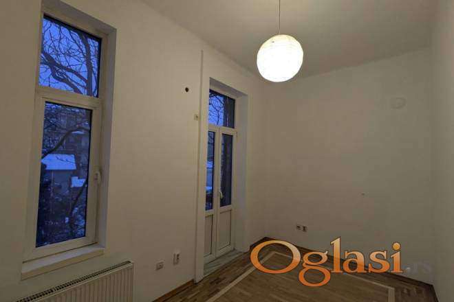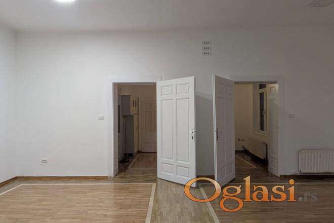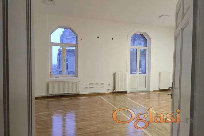 Izdaje se prostran salonski stan u Svetogorskoj ulici, na drugom spratu predratne, lepo održavane zgrade. Visoki plafoni od 3,3 metra, reprezentativan salon i velike sobe daju stanu izuzetnu prostranost i eleganciju, zbog čega je, pored stanovanja, izvanredno pogodan i za poslovni prostor, kancelarije, agenciju ili mirnu profesionalnu delatnost.