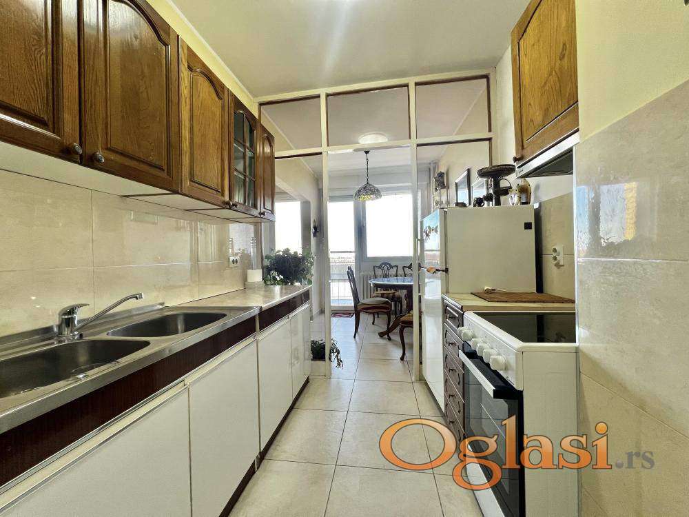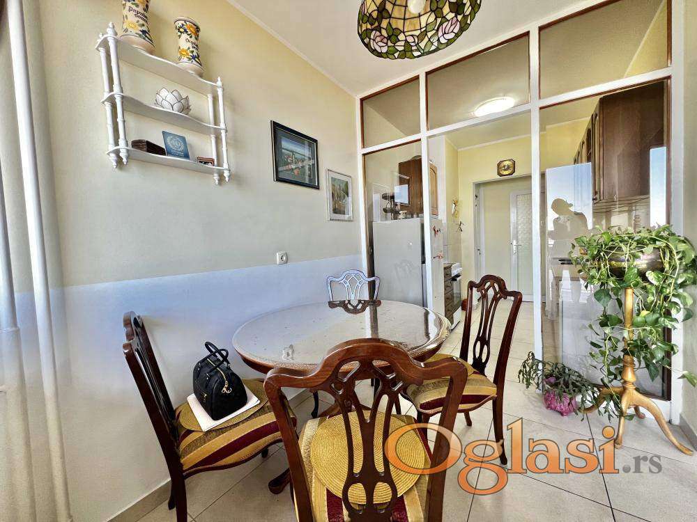 U ponudi je svetao i uredan stan na 11. spratu zgrade na jednoj od najlepših lokacija u Zemunu. Stan ima dve spavaće sobe, dve prostrane terase (jedna zatvorena i jedna otvorena) i prelep, otvoren pogled na reku i panoramu grada.