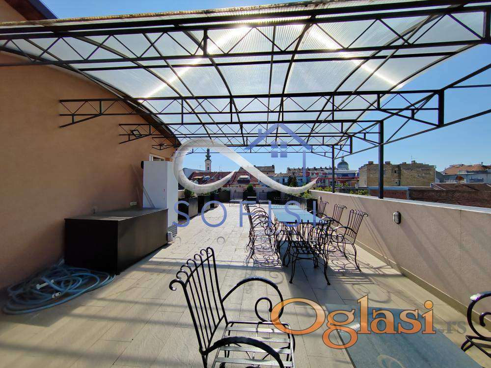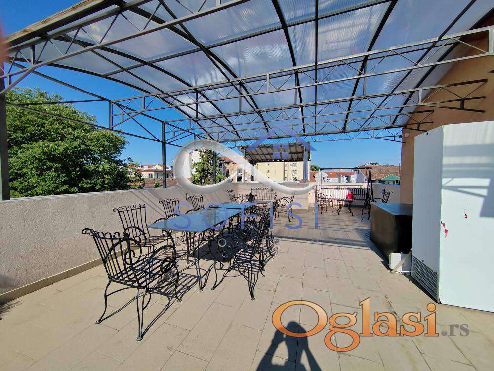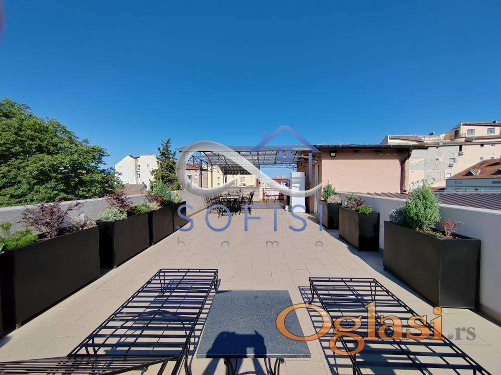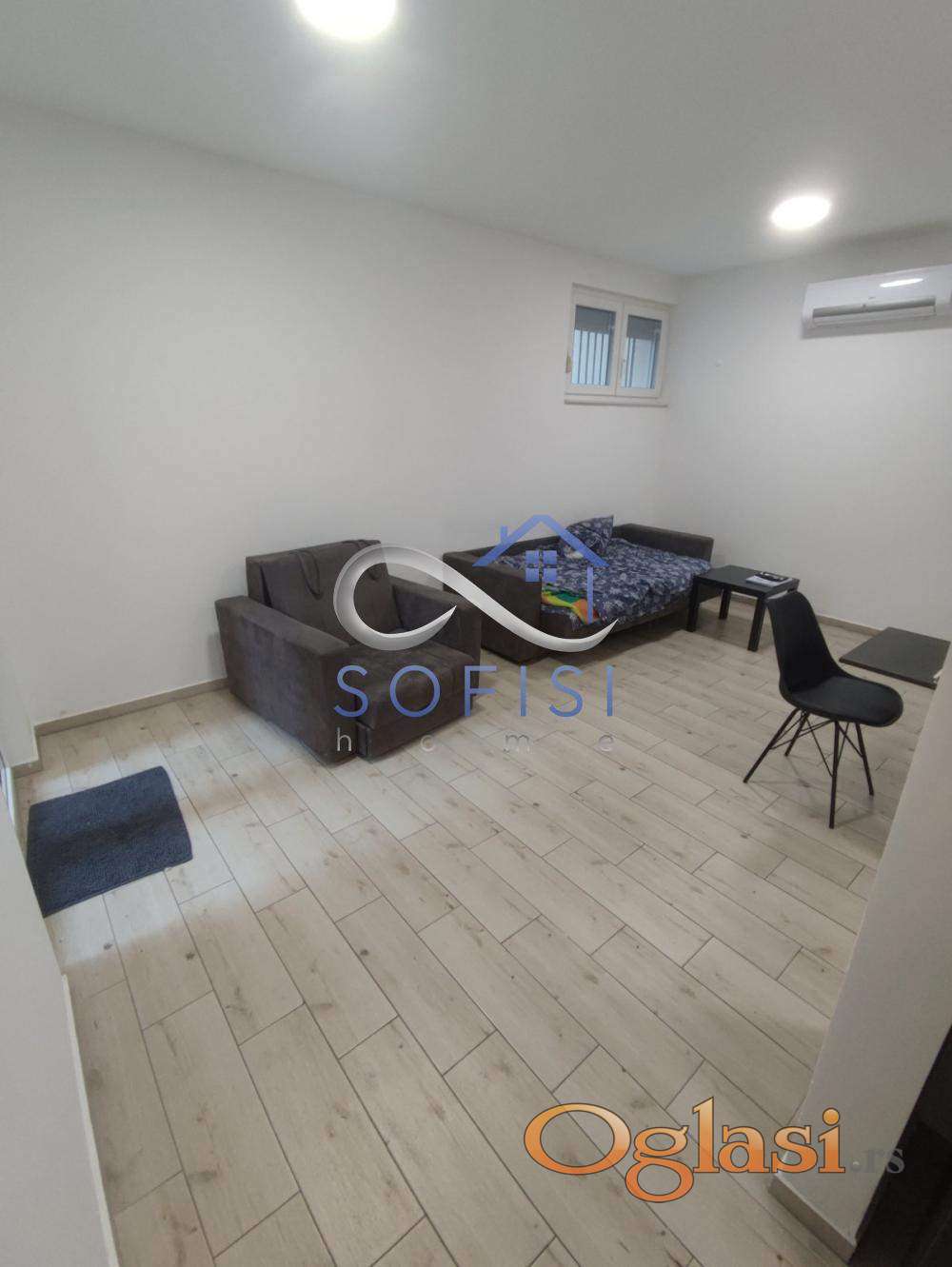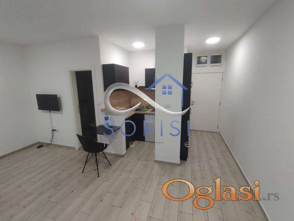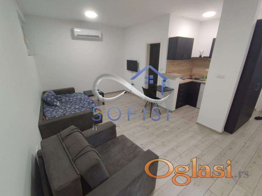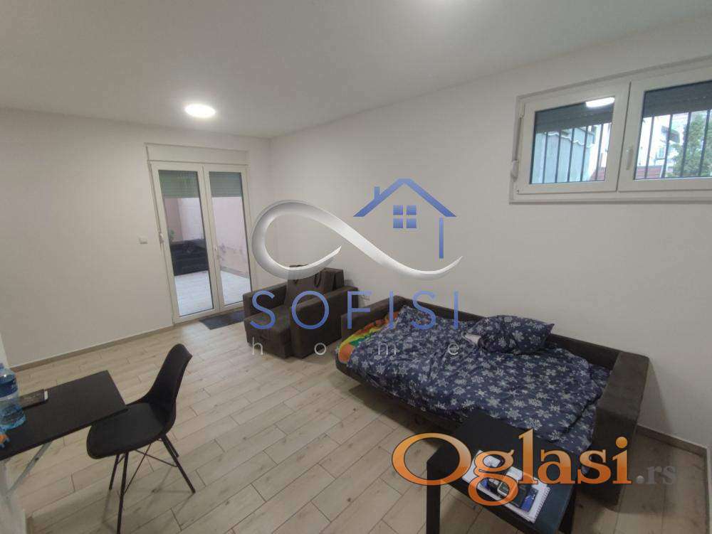 loNovi Sad, Centar. Nadomak pešačke zone i Pašićeve ulice. Ova garsonjera nalazi se u prizemlju urbane vile sagradjene 2021. godine. Čine ga dnevni boravak sa kuhinjomi spavaćim delom, kupatilo sa tuš kabinom. Mogućnost korišćenja zajedničke krovne terase cca 110m2. Cena zakupa sa svim režijskim troškovima iznosi 350 EUR. Useljiv od 01.04.2026.