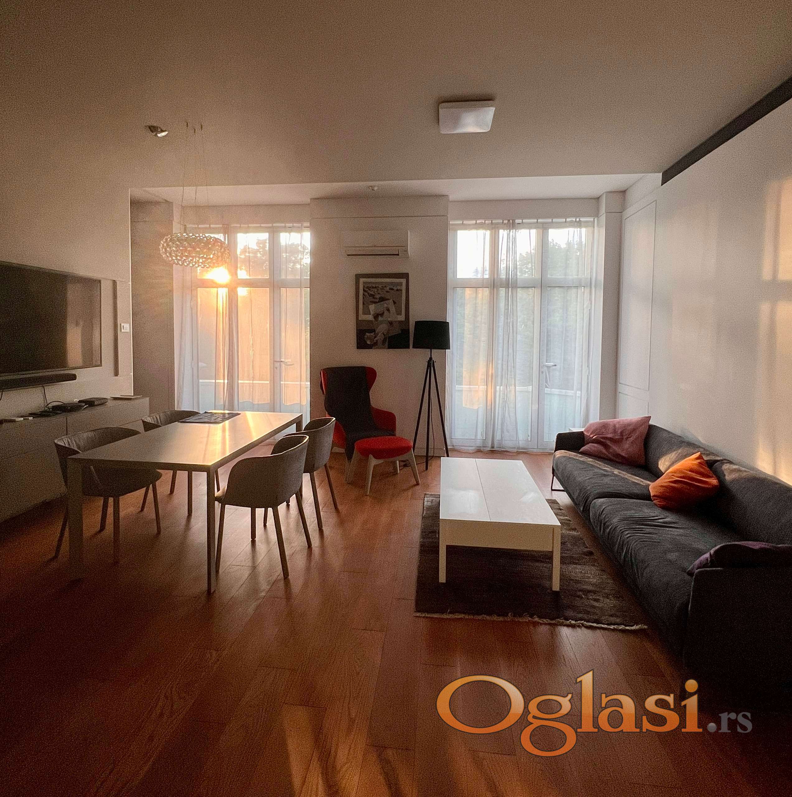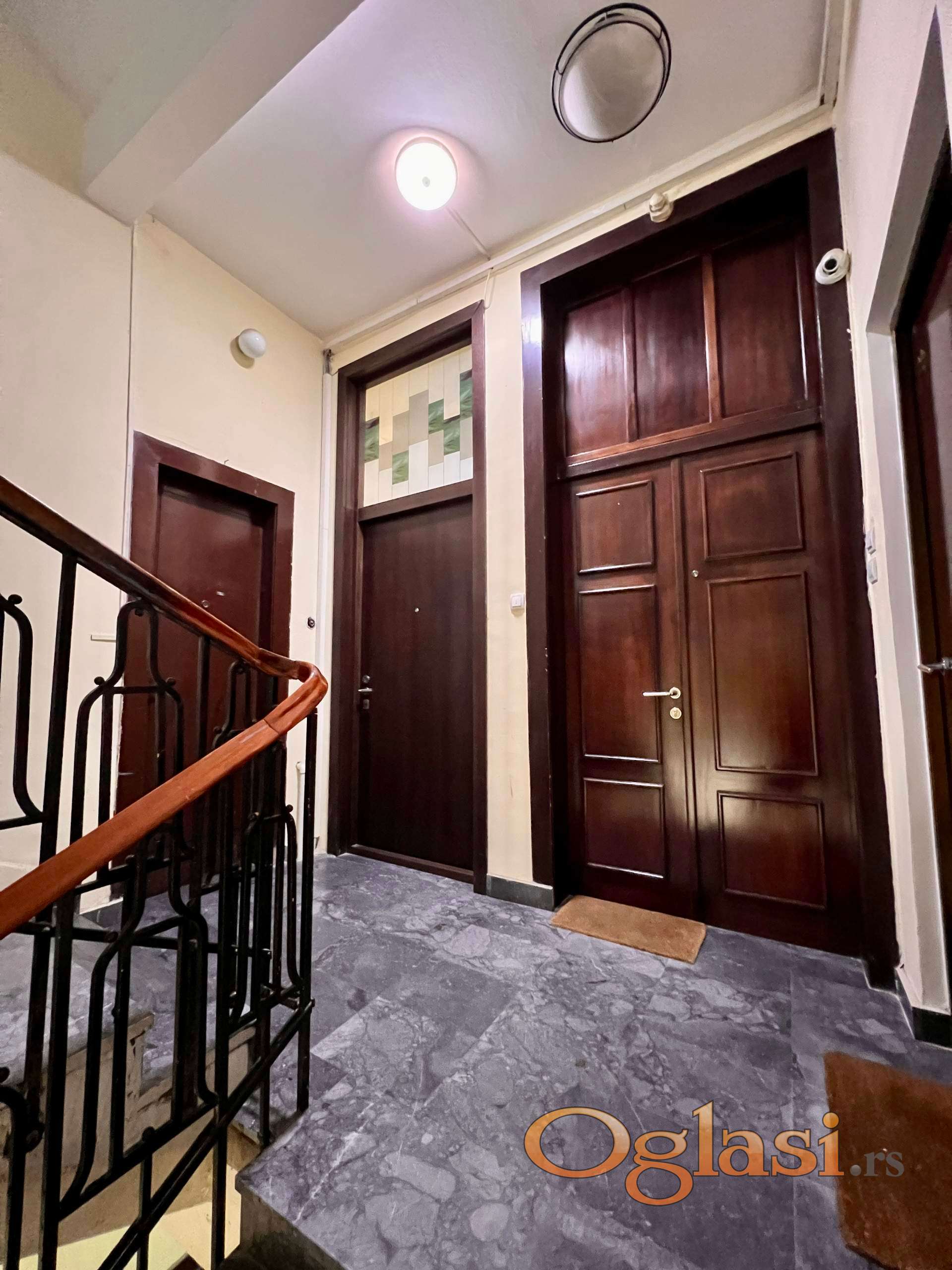 Stara gradnja, stambeno-poslovna zgrada u svojstvu kulturnog dobra. Dvosoban stan od 65 m2 kompletno renoviran i sa novim nameštajem. Visina plafona 3.2, orjentisan ka ulici i Kalemegdanu. Drugi sprat od četiri, bez lifta. Sastoji se od dnevnog boravka sa kuhinjom i trpezarijom, spavaće sobe, kupatila, toaleta i terase. Etažno grejanje, klima. Interfon. Useljiv odmah. Depozit obavezan. Agencijska provizija 50% od ugovorene cene zakupa.