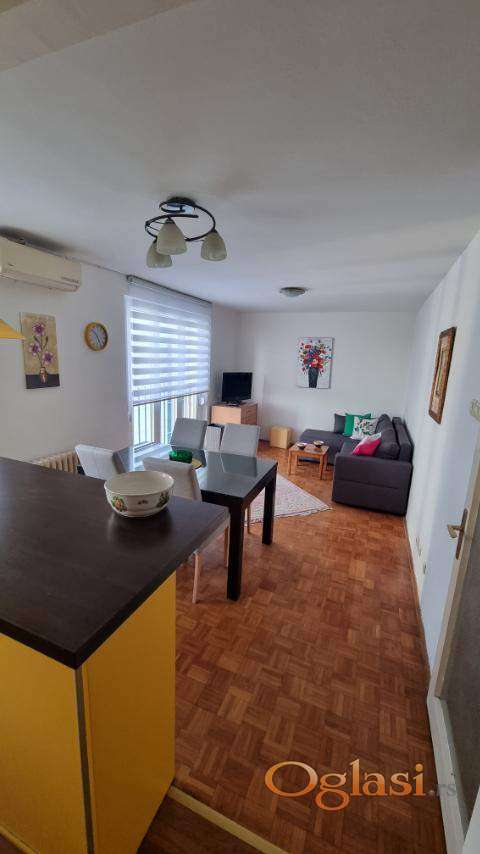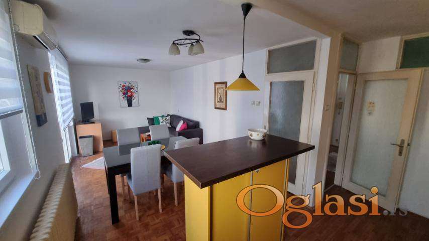 Izdaje se trosoban stan na TOP lokaciji, Centar, Radnička ulica, površine 70m2. Stan je potpuno namešten i opremljen belom tehnikom i klimom. Sastoji se iz dnevne sobe sa kuhinjom i trpezarijom, dve sobe, kupatila, toaleta i hodnika. Ne poseduje terasu, samo balkon. Stan je na osmom spratu u zgradi sa liftom. Useljivo od 15.04.2026. godine.