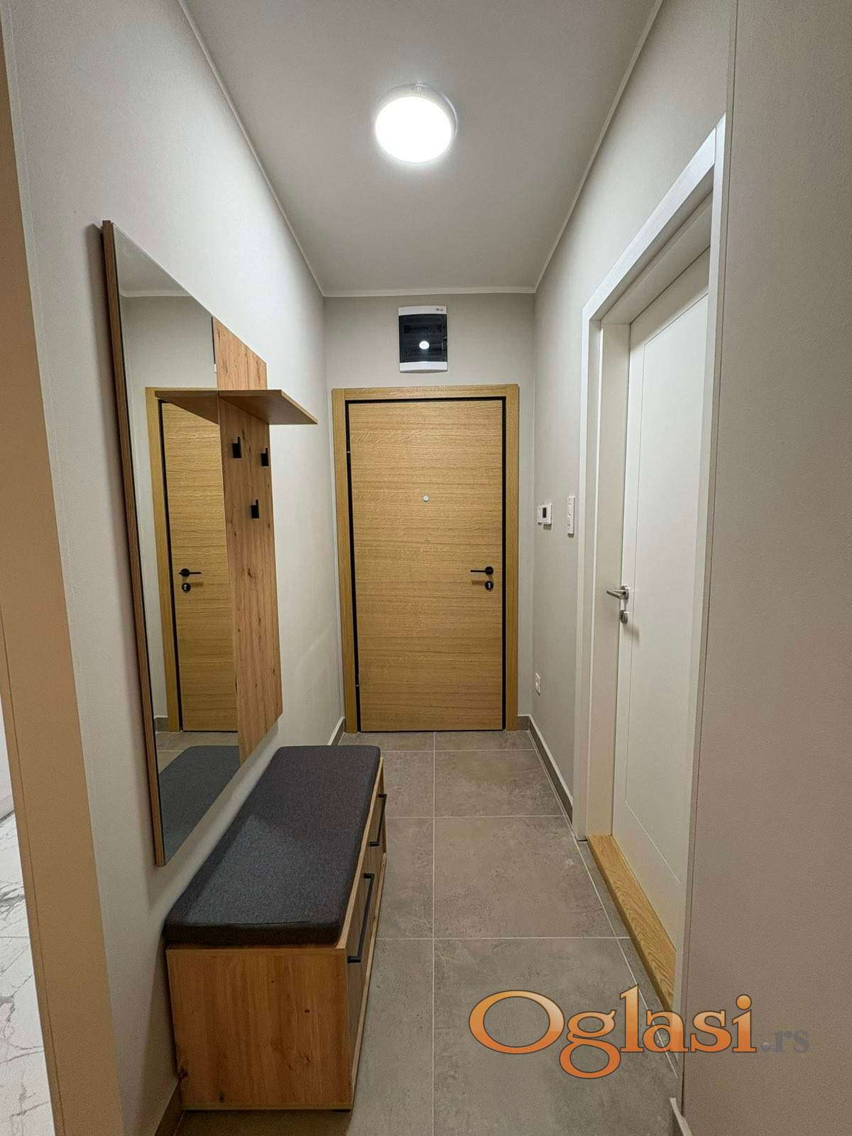 Oprema uključuje savremen nameštaj, ugradne plakare, klima uređaj, kao i sve neophodne električne uređaje (šporet, frižider, veš mašina).