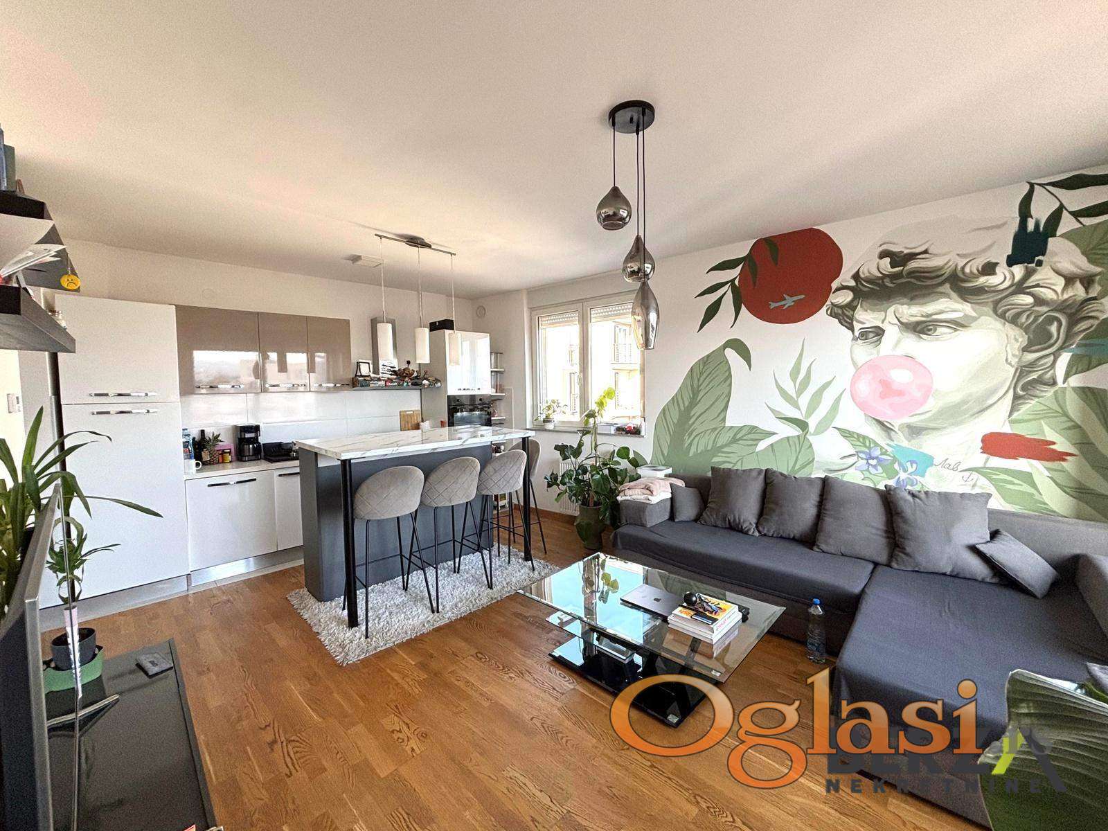 Agencijska šifra: 9112204.Izdaje se nov, namešten trosoban stan (60 m²) na 4. spratu stambene zgrade sa liftom na Telepu. Stan odlikuje velika dnevna soba sa kuhinjom i trpezarijom, terasa, dve spavaće sobe i kupatilo. Useljiv od 01.'5.2026. Stan je potpuno opremljen i odličan za porodicu ili studente. Potreban depozit u visini jedne mesečne zakupnine.. Agencijska provizija iznosi 50% od vrednosti prve mesečne zakupnine i plaća se jednokratno. Za više informacija pozovite na: 063/749-95-65 i 061/118-44-90 Berza nekretnine, Novi Sad, reg broj posrednika 1020