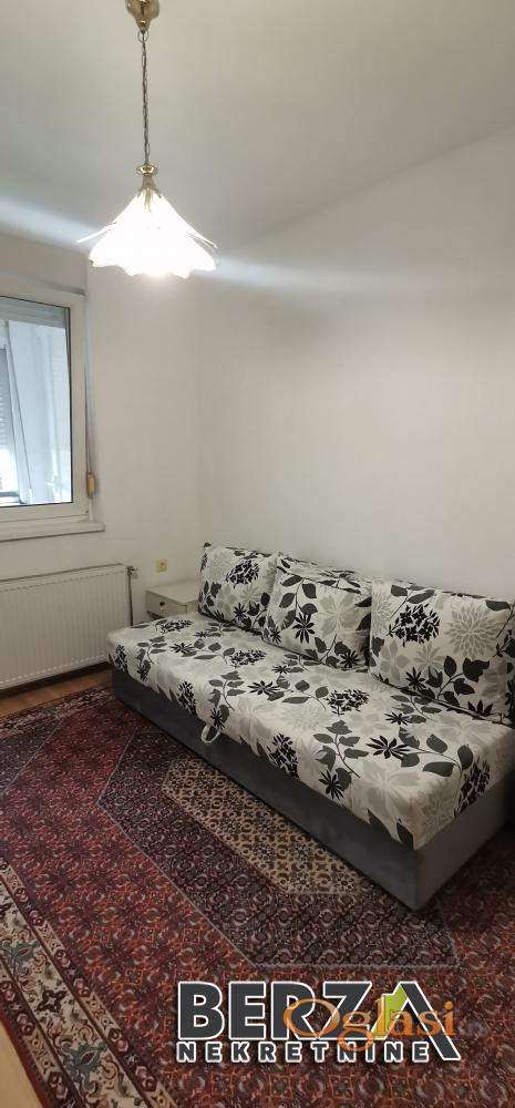Agencijska šifra: 9100870. Izdaje se dvosoban namešten stan (48 m2) na Sajmu. U neposrednoj blizini nalazi se porodilište, škole, vrtić, marketi, bulevari, autobuska stajališta. Stan se nalazi na 1. spratu novije zgrade. Grejanje je centralno. Strukturu stana čini ulazni hodnik, dnevni boravak sa trpezarijom i kuhinjom, spavaća soba, kupatilo i terasa. Stan je potpuno opremljen nameštajem, kuhinjskim elementima, belom tehnikom, TV-om. Postoji parking u dvorištu zgrade. Useljivo odmah. Obavezan je depozit u visini jedne mesečne zakupnine.