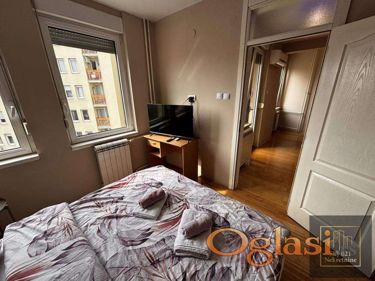 Izdaje se odličan, kompletno opremljen dvosoban stan kod Socijalnog, na trećem spratu zgrade sa liftom.