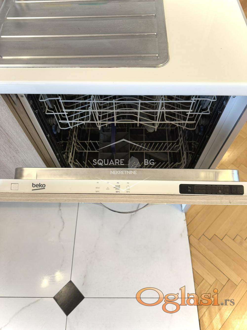 Kompletno je opremljen kuhinjskim aparatima, mašinama, posuđem i svim stvarima neophodnim za zivot.