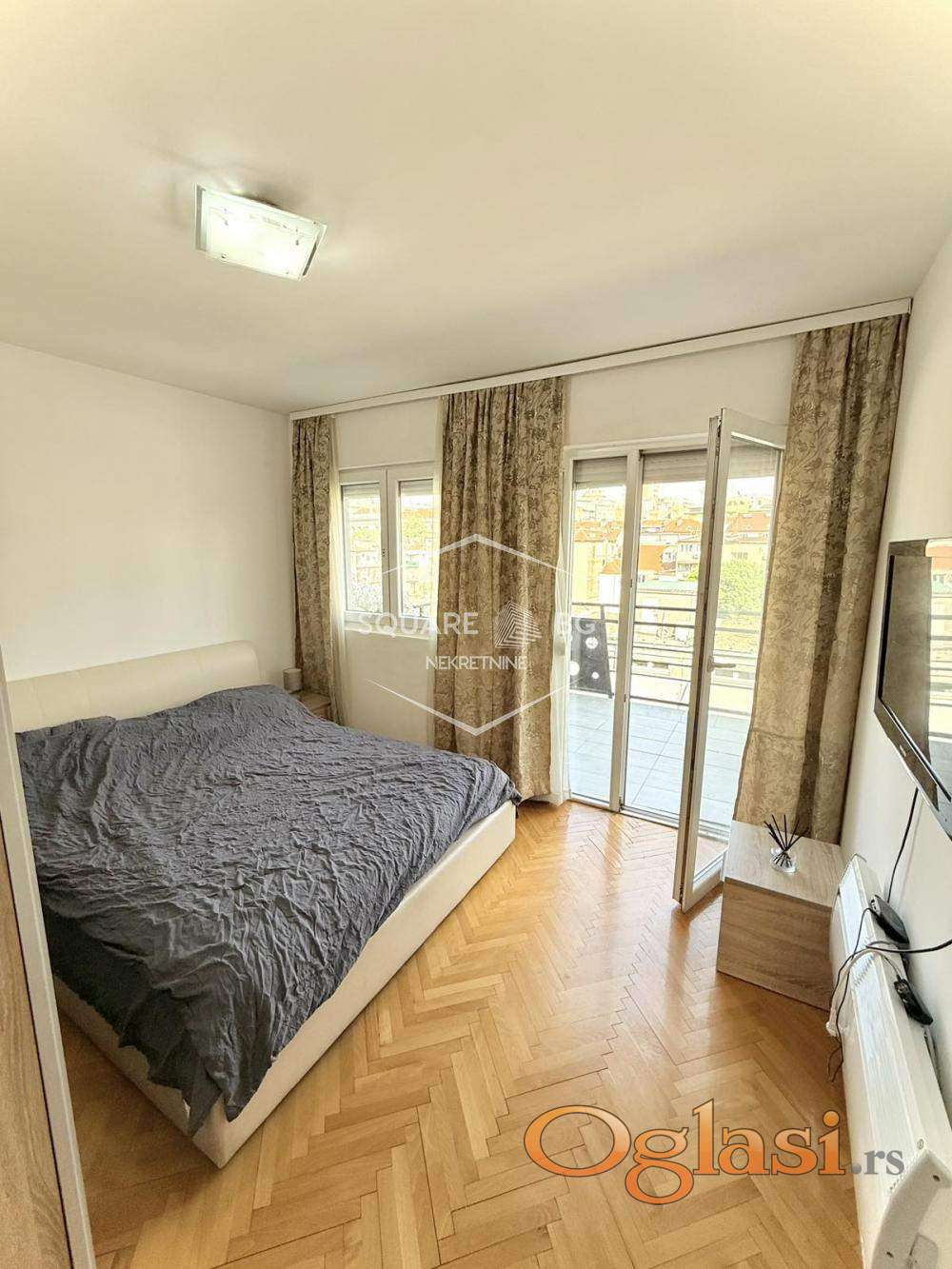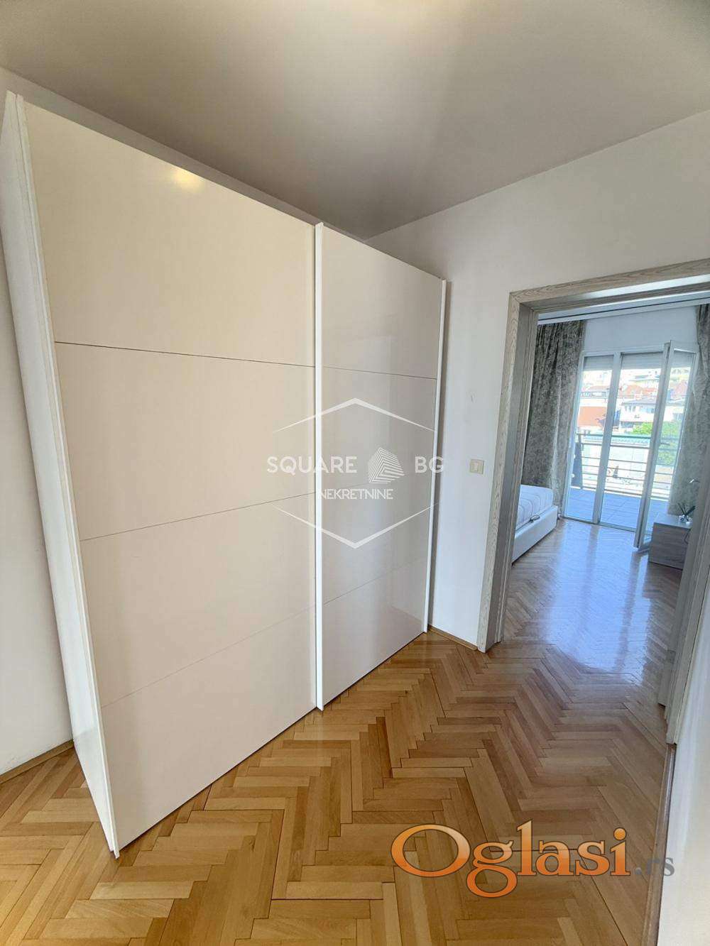 Izdaje se renoviran lux stan u mirnom kraju u centru grada okrenut ka Beogradu na vodi, sa terasama sa panoramskim pogledom. Nalazi se u tihoj ulici prekoputa Beograda na vodi, koja je na odličnoj povezanosti sa drugim delovima grada. Ima svoj parking.Niske režije.Kupljen je nov veliki TV od 55 inca i nov klub sto.