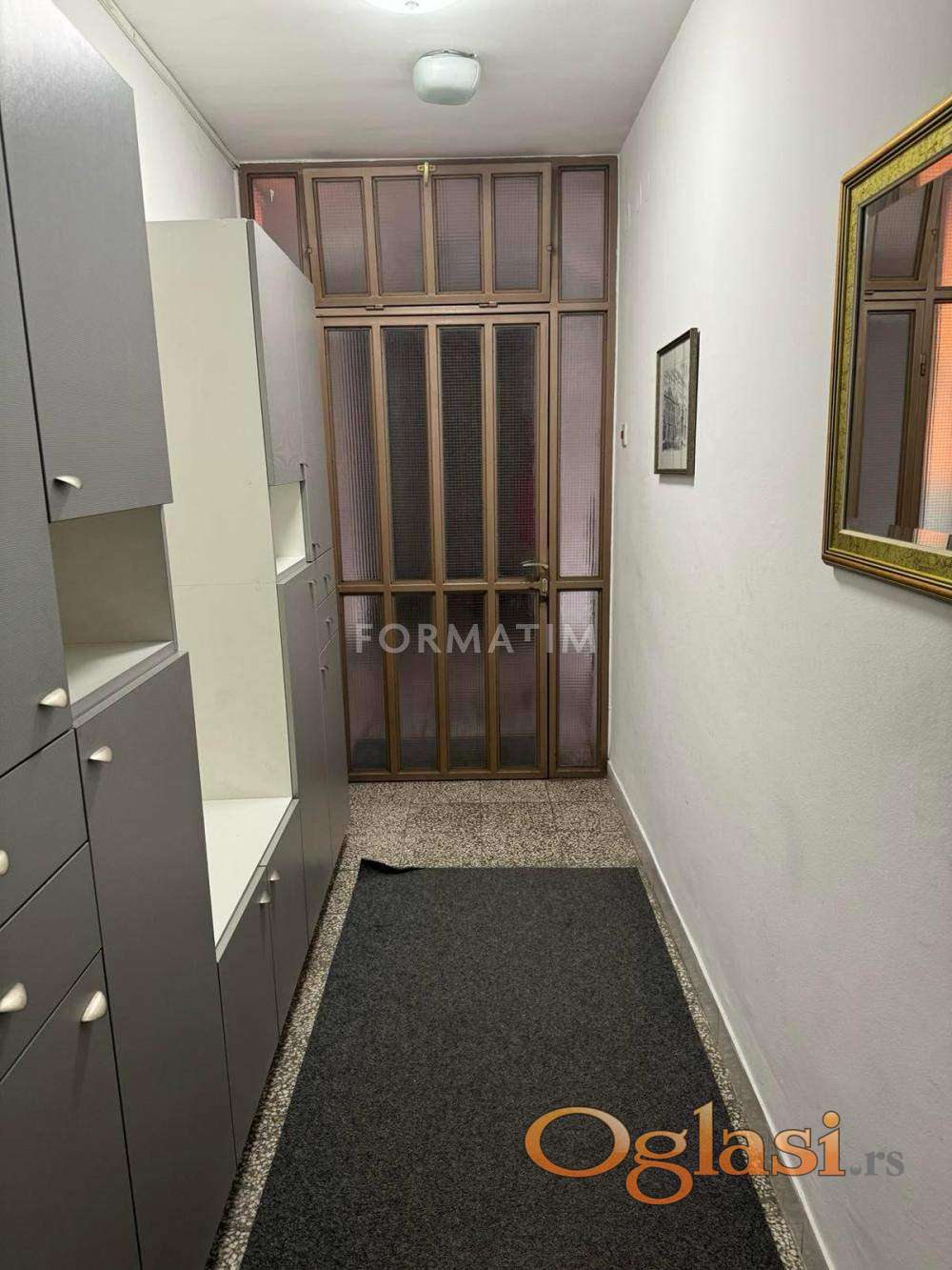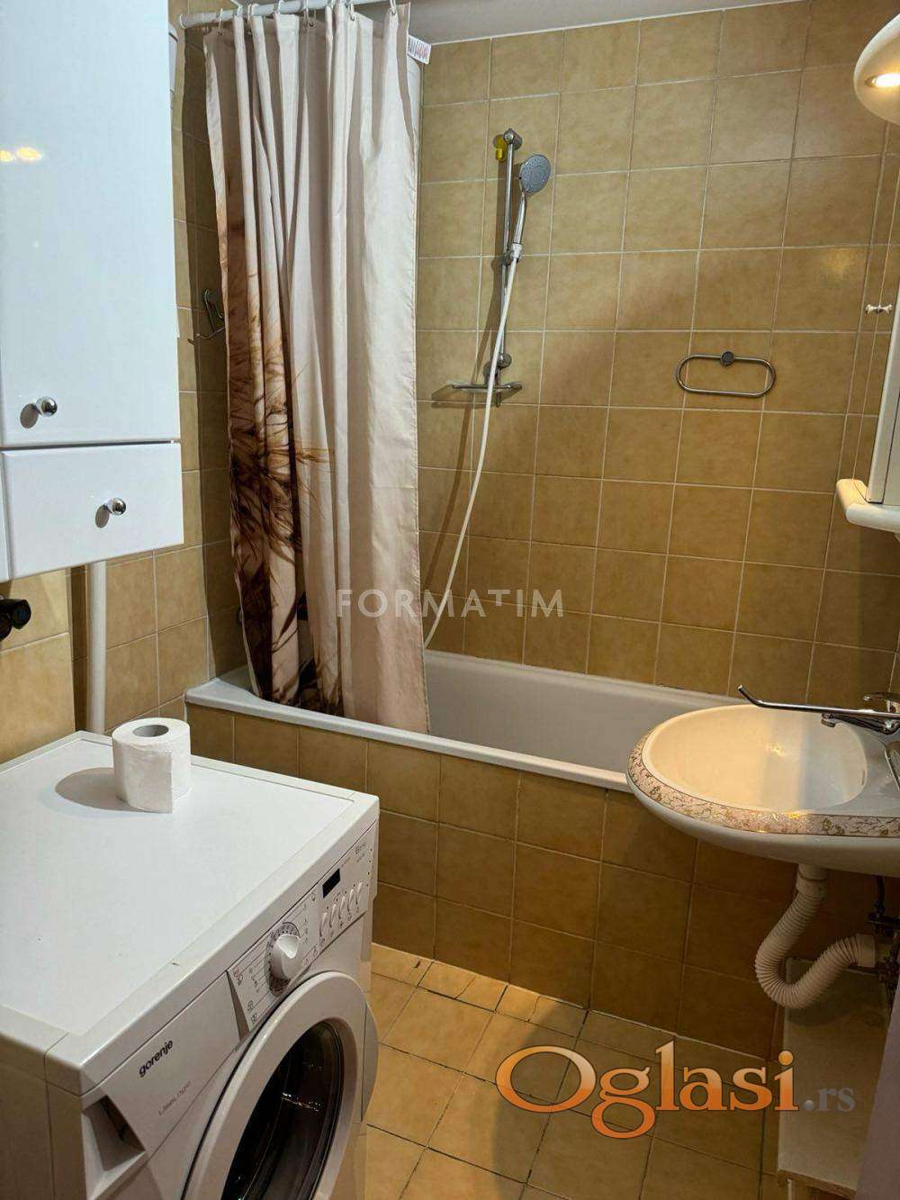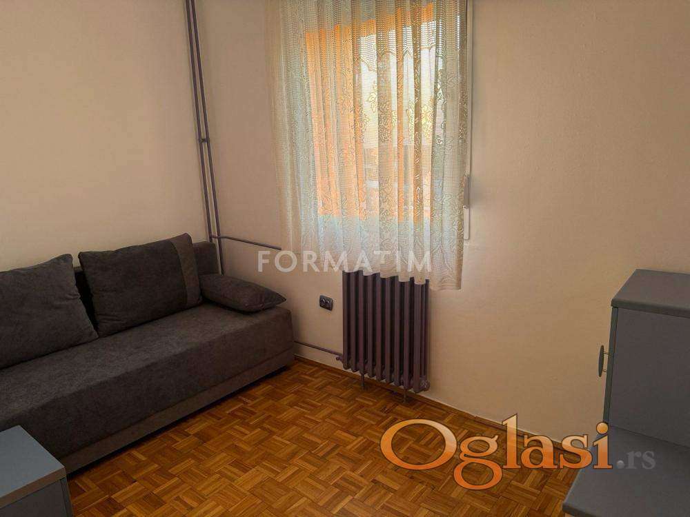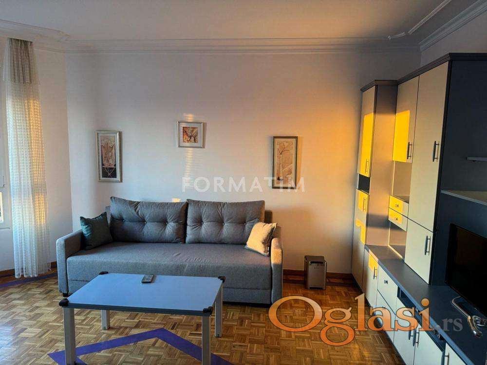 Izdaje se renoviran i potpuno namešten stan površine 50 m², izvorno strukture 1.5 soba, sa mogućnošću korišćenja trpezarije kao dodatne sobe.