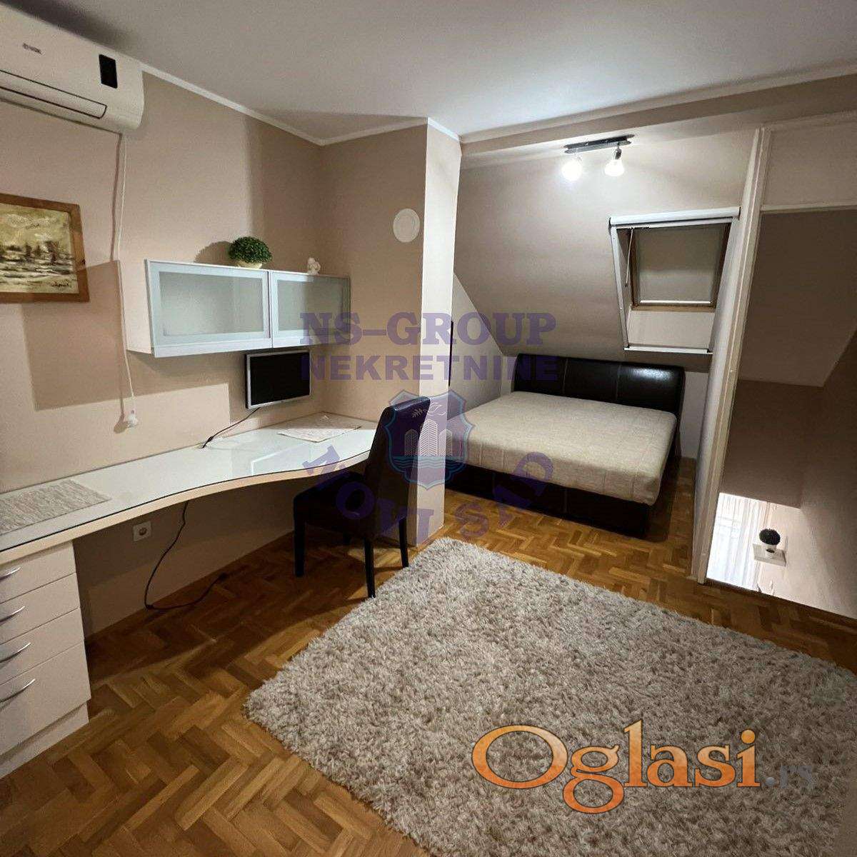 Izdaje se namešten dupleks stan od 40m² na trećem spratu u naselju Nova Detelinara (zgrada bez lifta). Stan je funkcionalno organizovan – na donjoj etaži nalazi se dnevni boravak sa kuhinjom i kupatilom, dok je na gornjoj etaži spavaća soba. Stan je kompletno opremljen, poseduje po jednu klimu na svakoj etaži, kao i po jedan TV na svakom spratu. U cenu je uključeno numerisano parking mesto u dvorištu zgrade. Odličan izbor za jednu osobu ili par koji žele mirnu lokaciju i praktičan raspored prostora.