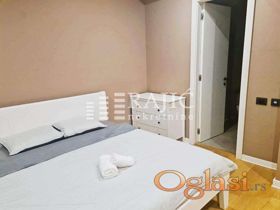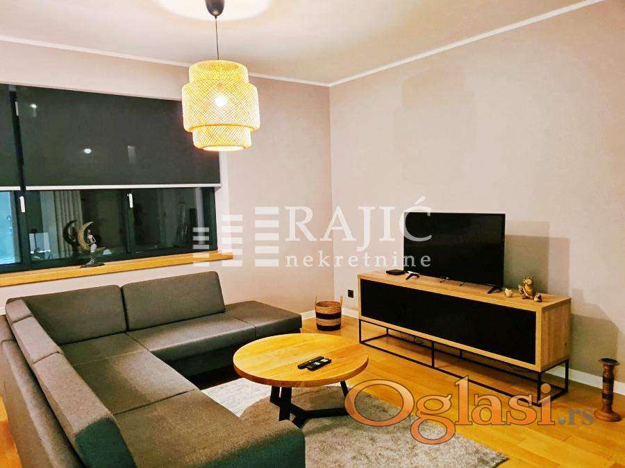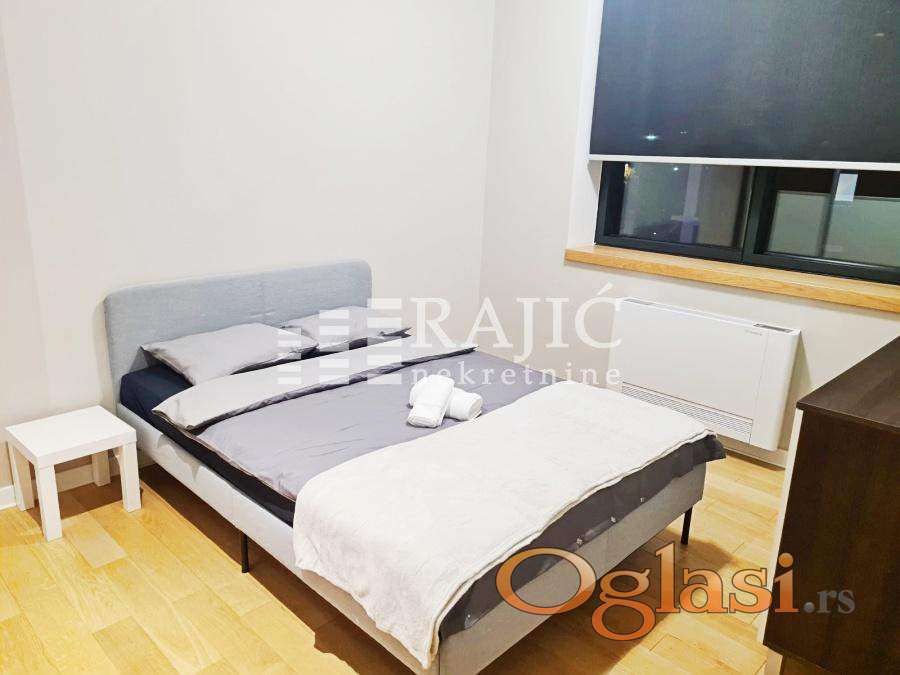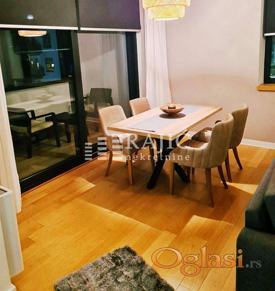 Komforan i moderno opremljen stan u lukzuznom kompleksu A blok na Novom Beogradu. Struktura: dnevni boravak sa trpezarijom, kuhinja, dve spavaće sobe, kupatilo i terasa. Zgrada ima obezbeđenje 24 časa. U cenu je uračunato i parking mesto u garaži. Agencijska provizija 60%.