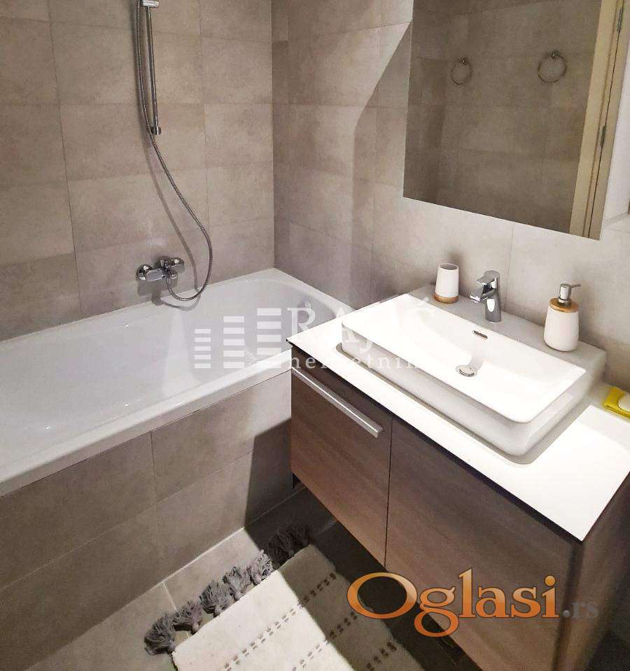 Luksuzno opremljen stan trosoban stan u prestižnom beogradskom naselju beograd na vodi. Struktura stana je trosobna: dnevna soba, kuhinja sa trpezarijom, dve spavaće sobe, kupatilo, vešernica i terasa sa lepim pogledom. Jedno parking mesto u garaži. Agencijska provizija 60%.