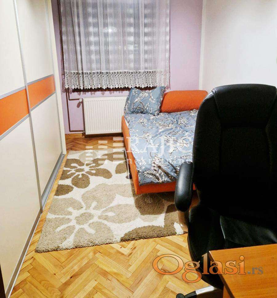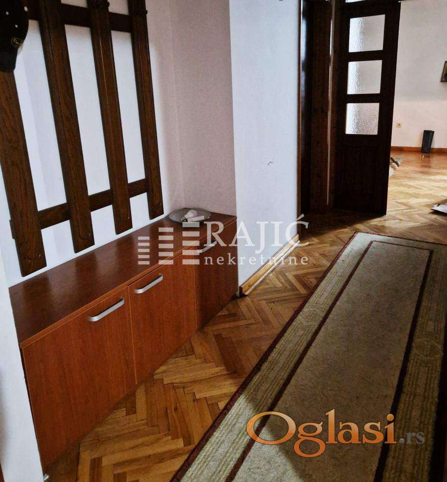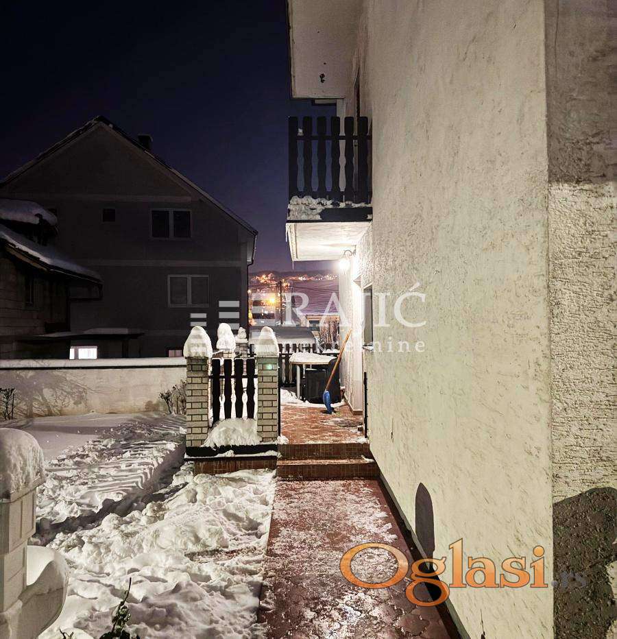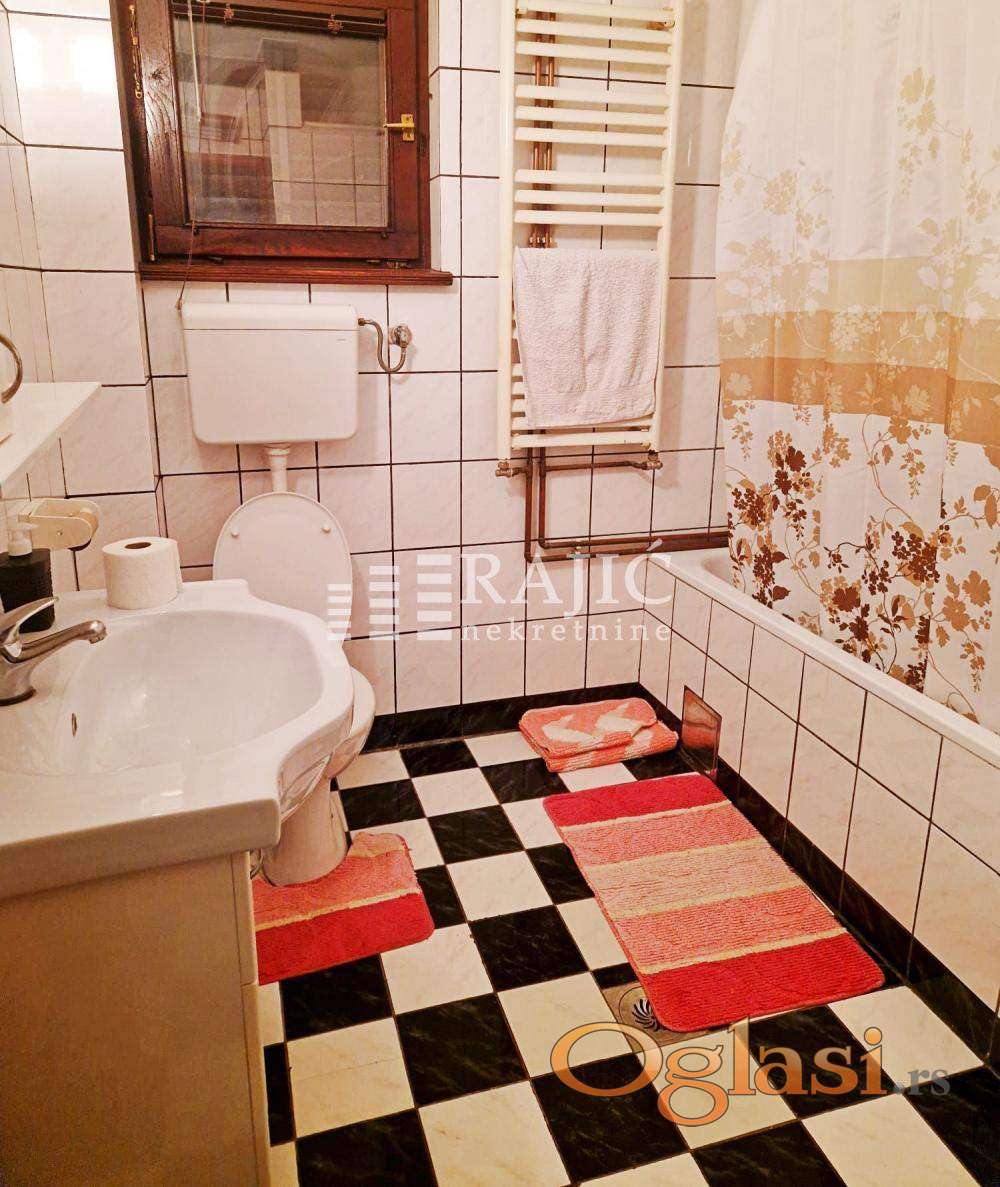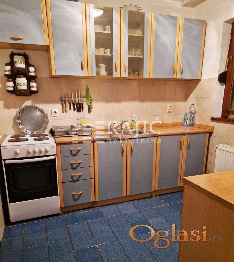 Stan u kući sa posebnim ulazom, kompletno namešten. Prostran, sa velikom dnevnom sobom, dve spavaće sobe, kuhinjom, trpezarijom, kupatilom i terasom.