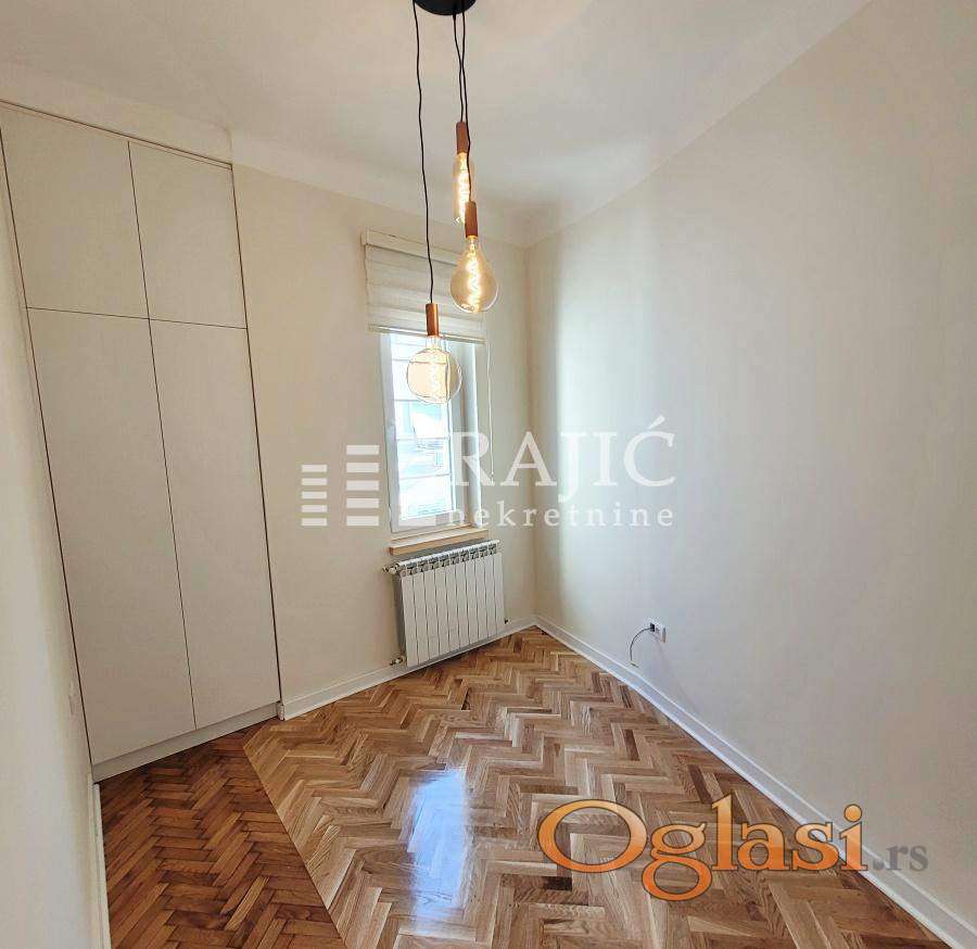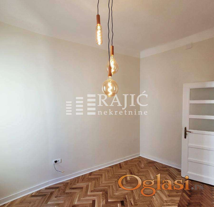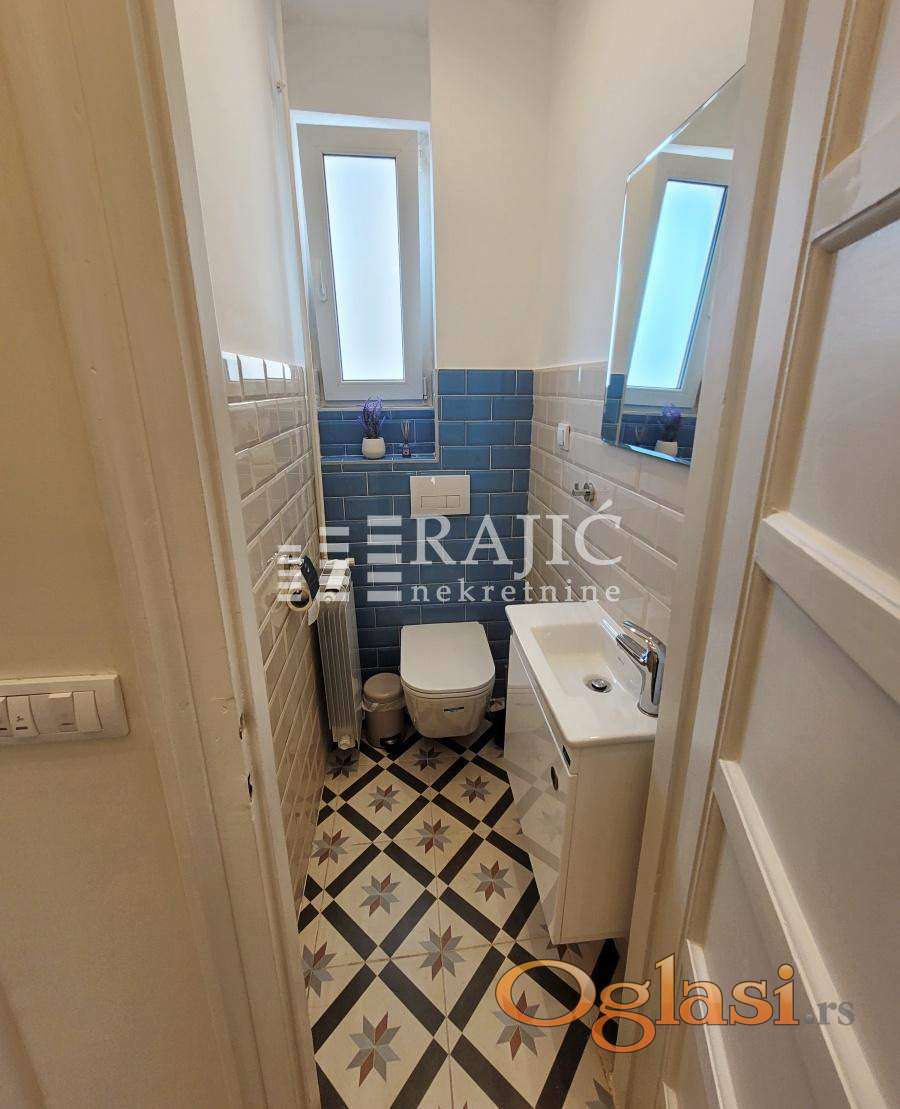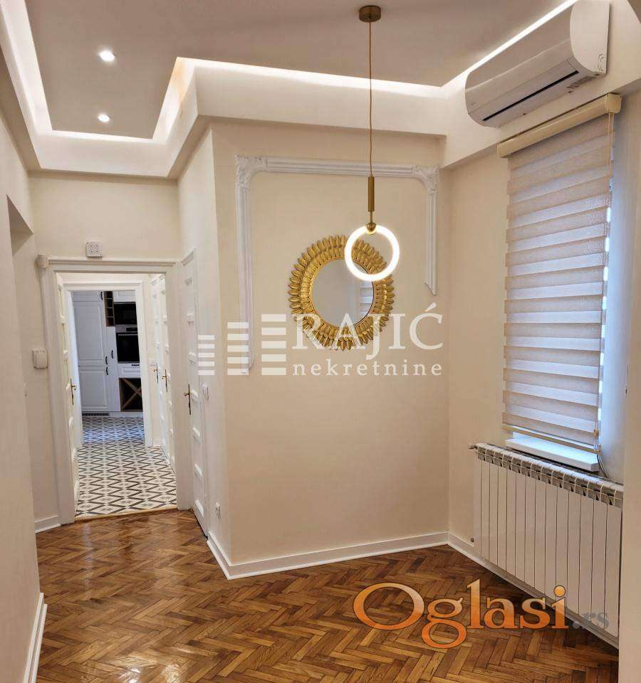 Izvanredan stan u srcu Beograda. Po strukturi je dvoiposoban, renoviran, pogodan za poslovni ili stambeni prostor. Stan ima dnevni boravak, kuhinju sa trpezarijom, 2 sobe, kupatilo, toalet, ostavu za mašinu. Slobodan od novembra. Agencijska provizija 60%.