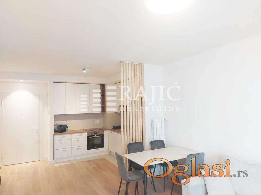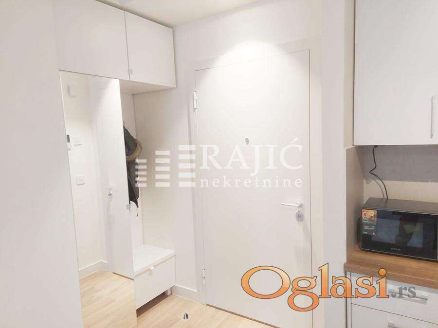 Luksuzan nov stan u lepoj zgradi u prestižnom naselju Beograd na vodi. Život u BW Eterna pruža izvanredne pogodnosti, kao što su odlična povezanost sa ključnim delovima grada, bujno zelenilo obližnjeg Savskog parka, blizina tržnog centra Galerija i Kule Beograd, kao i brojne prodavnice, kafići i restorani Beograda na vodi. Stanarima BW Eterne na raspolaganju ce biti lobi sa recepcijom, podzemna garaza na dva nivoa, fizicko-tehnicko obezbedjenje 24/7, unutrasnje dvoriste sa igralistem za decu, a u neposrednoj blizini nalaze se maloprodajni i ugostiteljski objekti, kao i obdaniste. Prostorije: ulazni hodnik, prostran dnevni boravak sa izlazom na terasu, kuhinjsko trpezarijski deo, ostava, kupatilo. Opremljen novim nameštajem i belom tehnikom. Parking mesto uz doplatu u garaži. Agencijska provizija 60%