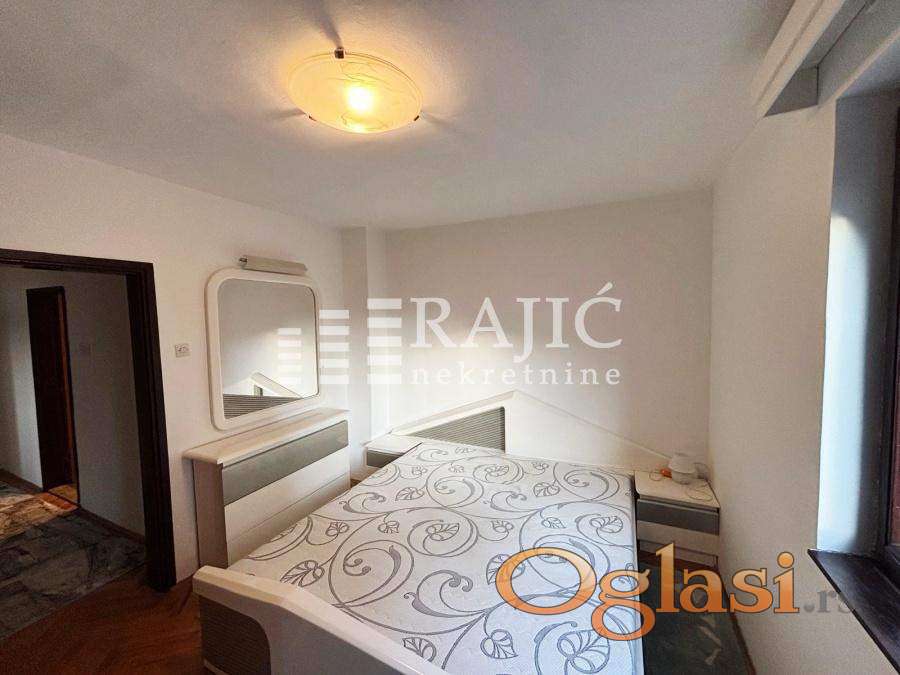 Prostorije: dnevna soba, odvojena kuhinja sa trpezarijskim delom, dve spavaće sobe, prostrana terasa koja je orijentisana ka ulici na stari deo grada.