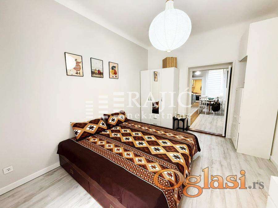 Izdaje se svetao, prijatan stan u neposrednoj blizini Kalemegdana. Iz ulaznog predsoblja se ulazi u sve prostorije:dnevni boravak, spavaću sobu, trpezarijsko-kuhinjski deo i kupatilo. Stan je namešten i opremljen za dugoročno izdavanje. Zgrada je uredna i održavana sa interfonom. Agencijska provizija 60%.