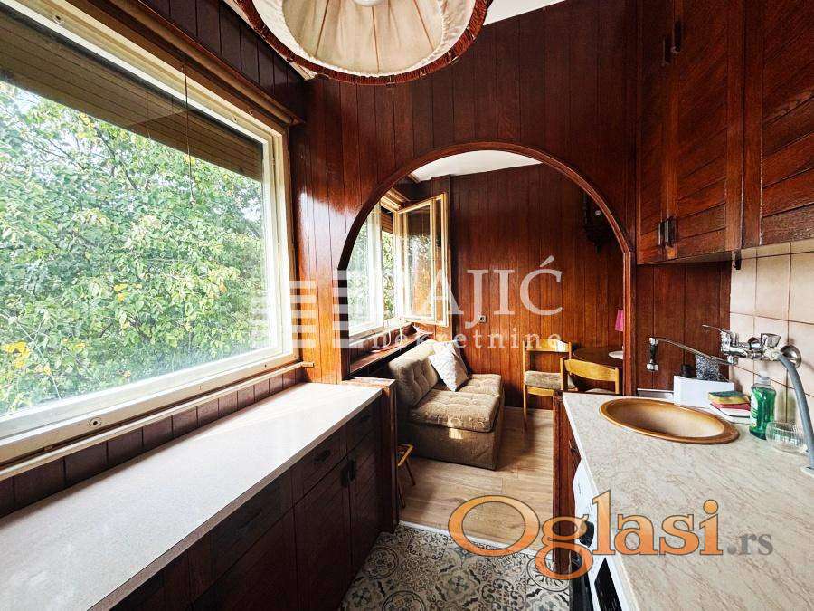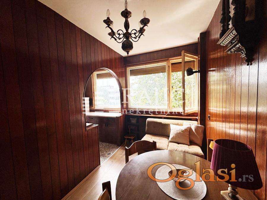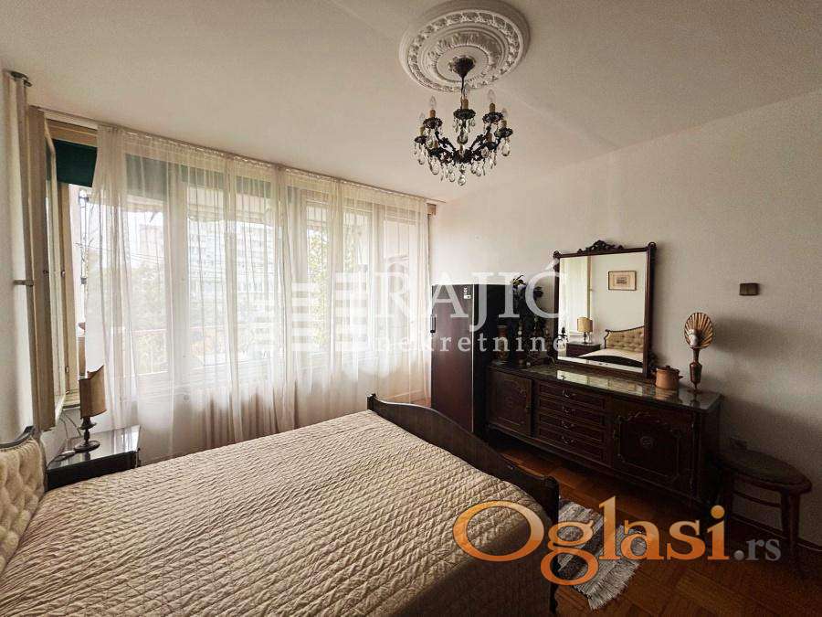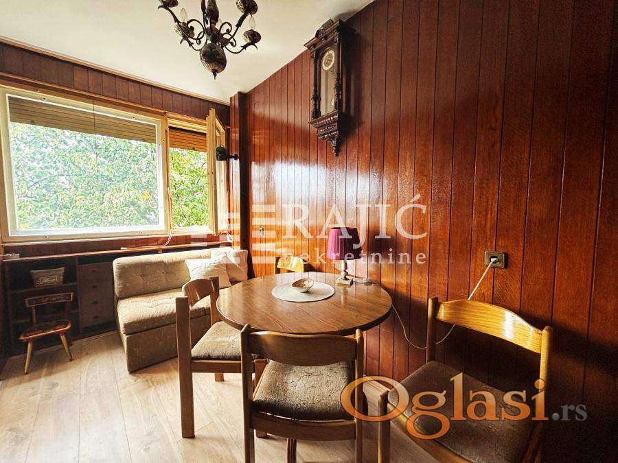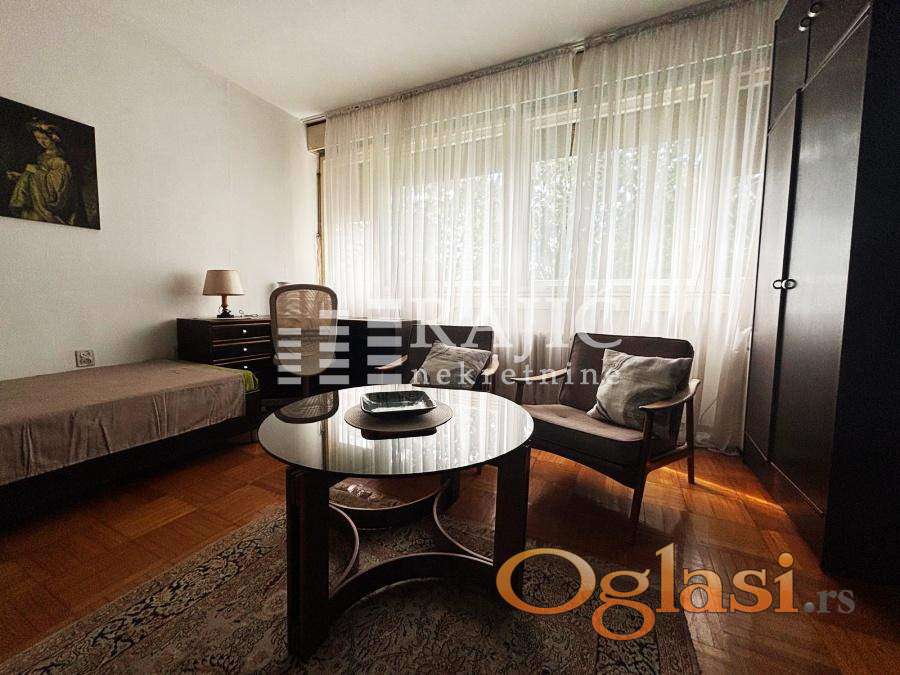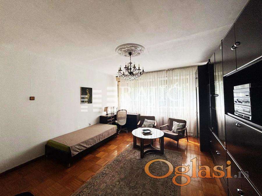 Stan na Konjarniku, prostran, ima veliki dnevni boravak, kuhinju, tpezariju sa ležajem, spavaću sobu, kupatilo, hodnik i terasu. Parking u okolini nije u zoni. Infostan oko 12.000, upravnik zgrade 1.000 dinara, struja po potrošnji. Agencijska provizija 60%.