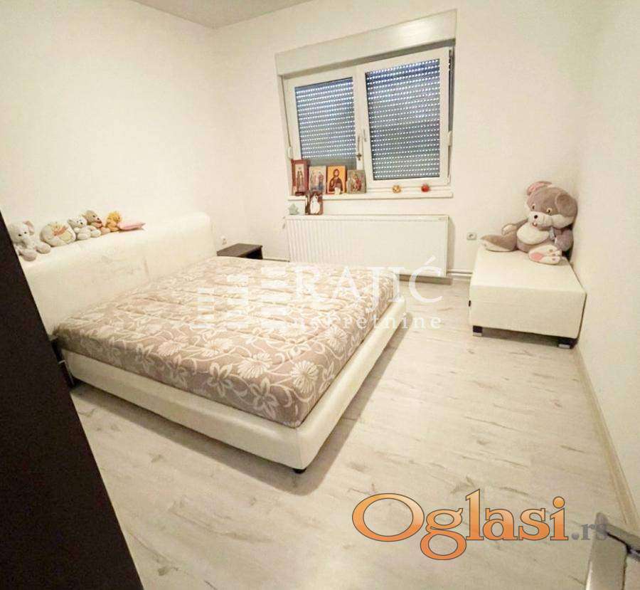 Prostorije: dnevni boravak, kuhinja sa trpezarijom, dve spavaće sobe, kupatilo.