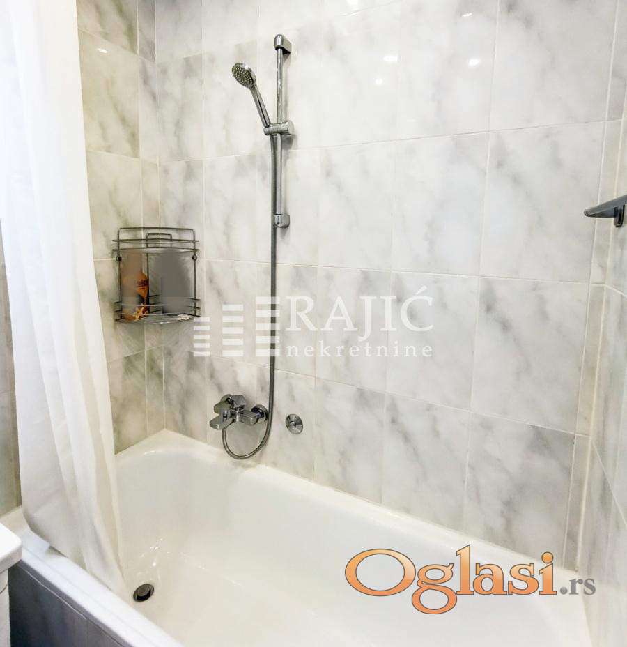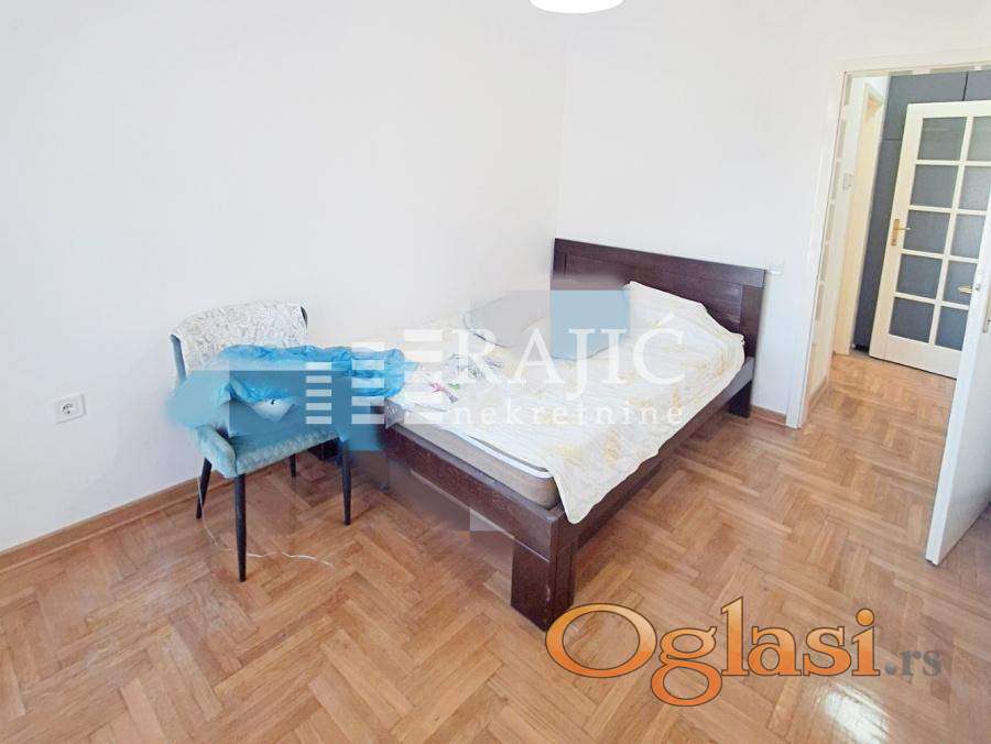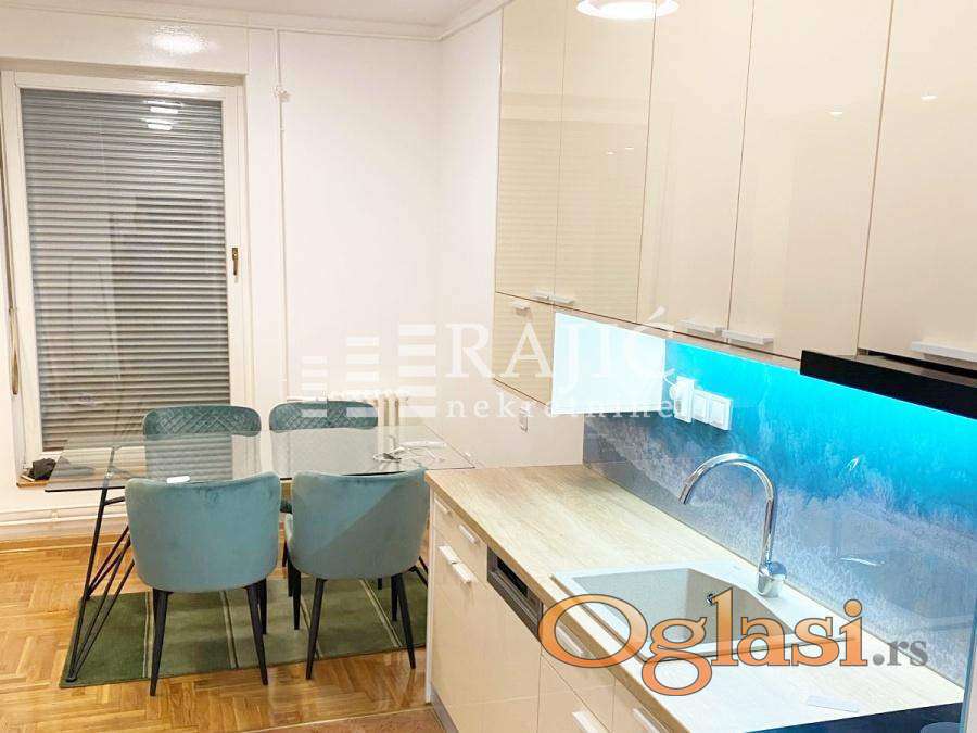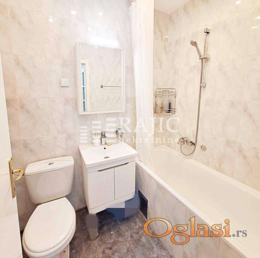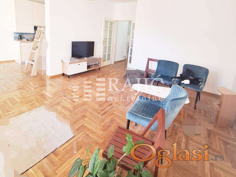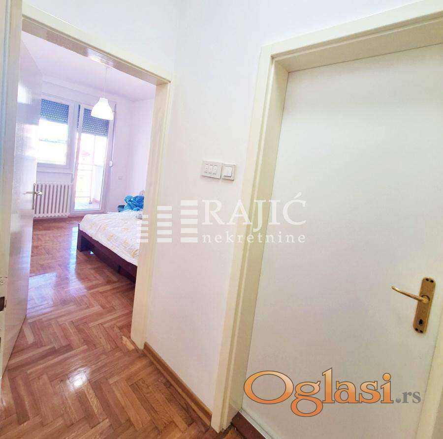 Renoviran, prostran stan u centru grada na Dorćolu. Prostorije: ulazni hodnik, kuhinja sa trpezarijim, dnevni boravak, spavaća soba, kupatilo, dva francuskabalkona, terasa. Slobodan parking ispred zgrade. Agencijska provizija 60%