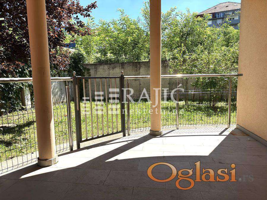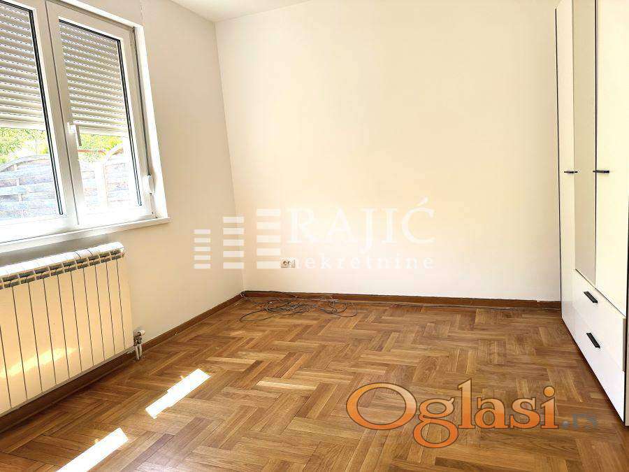 Stan na odličnoj lokaciji na Dedinju, u blizini Belog dvora. Izuzetno komforan i prostran, u mirnom kraju. Prostorije: ulazni hodnik, tri spavaće sobe, dnevni boravak je povezan sa kuhinjom i trpezarijom, kupatilo, gostinjski toalet, ostava. Iz dnevnog boravka se izlazi na prostranu tereasu u čijem nastavku je privatno dvorište koje pripada samo ovom stanu. Uz stan se izdaje garaža koja sa još dve pomoćne prostorije ima površinu oko 70m2. U garaži postoji mokri čvor. Nekretnina je pogodna za porodični život, ali se može rentirati i kao poslovni prostor. Stan se izdaje prazan sa opremljenom kuhinjom. Provizija agencije 60%