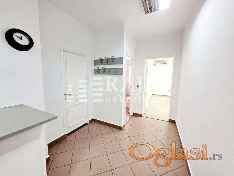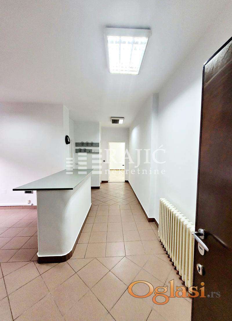 Prostorije: ulazni / prijemni deo, čajna kuhinja, kupatilo, jedna odvojena prostorija, još jedna prostorija sa izlazom na terasu.